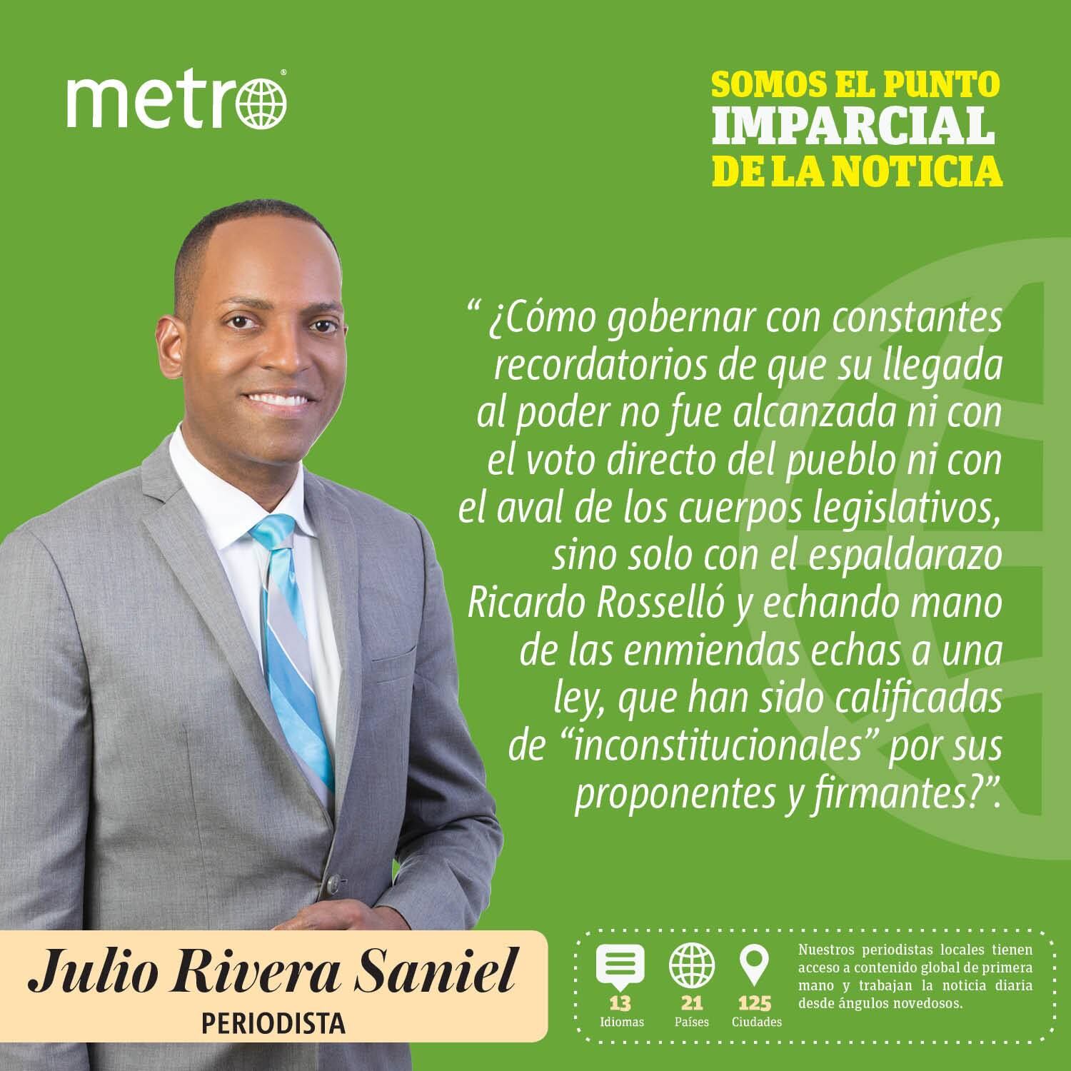 Y es que el manejo de la situación legal de Pierluisi como “gobernador” deja mucho que desear, sobre todo en los tiempos que vivimos. Tal vez hace unos años —o unos meses antes del llamado Verano del 19— la llegada de Pierluisi a La Fortaleza habría pasado con menos aspavientos. Pero en estos tiempos de reclamos de pulcritud, transparencia y exigencia de cuentas claras, existen demasiadas nubes sobre la “gobernación” del otrora comisionado residente. Y no hablo sobre los méritos o faltas de Pierluisi, tampoco sobre su currículum o su experiencia laboral. Si Pierluisi merece o no —en los méritos— ser gobernador es harina de otro costal. Un asunto que, en definitiva, deberá ser adjudicado por usted que me lee. De lo que hablo es del mar de contradicciones que rodean la llegada de Pierluisi “al poder”.