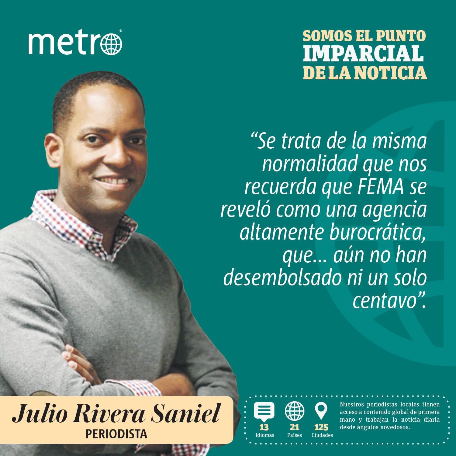 Se trata de la misma normalidad que nos recuerda que FEMA se reveló como una agencia altamente burocrática. Tanto que al día de hoy, y en medio de los preparativos por el posible paso de Dorian, fue común escuchar las quejas de todos los alcaldes —todos— de que la agencia del Gobierno de Estados Unidos y su contraparte local, el llamado COR3, aún no han desembolsado ni un solo centavo para labores de infraestructura y apenas han reembolsado por concepto de gastos relacionados con recogido de escombros y material vegetativo. Dos años de espera es, a todas luces y sin lugar a dudas, el equivalente a un proceso ineficiente.
