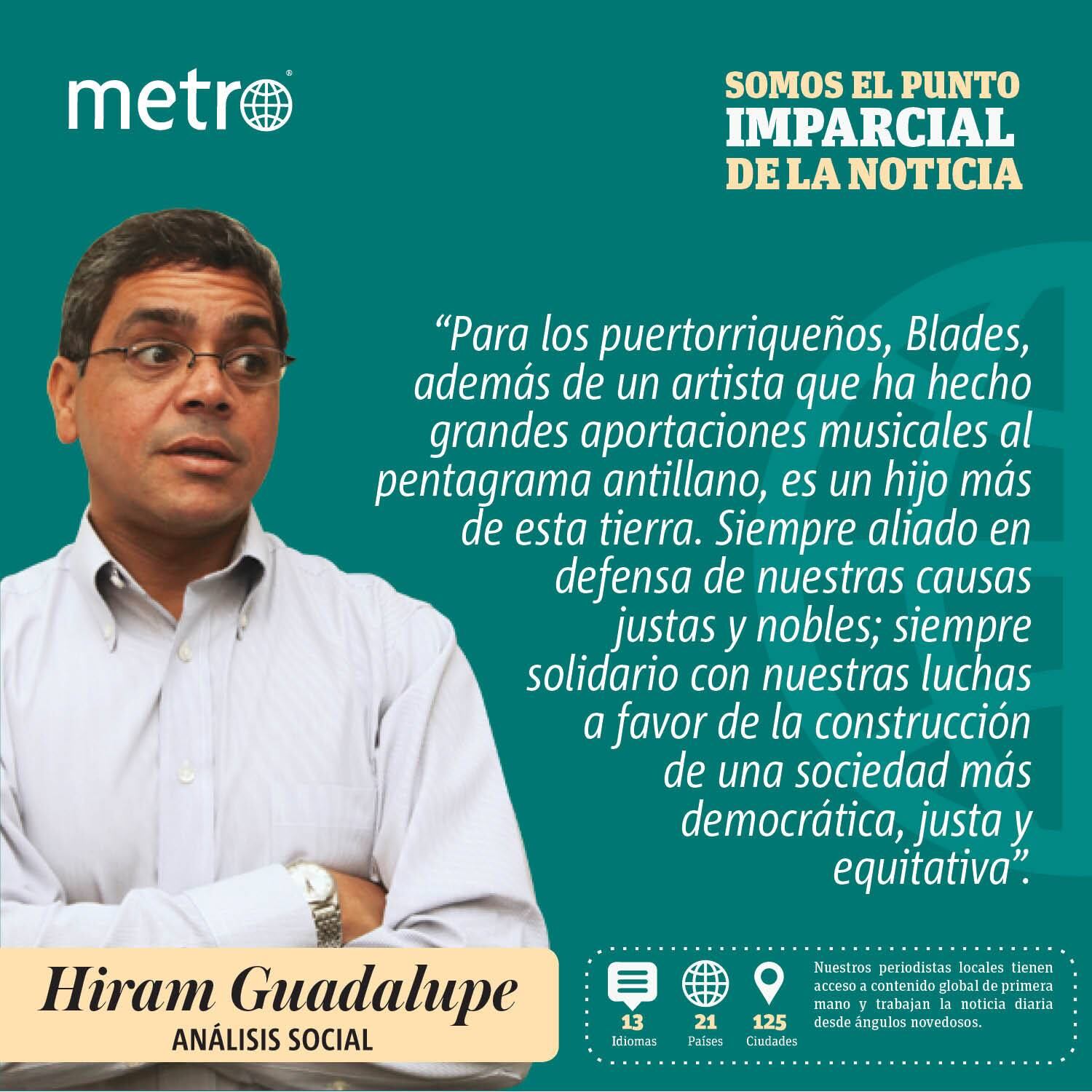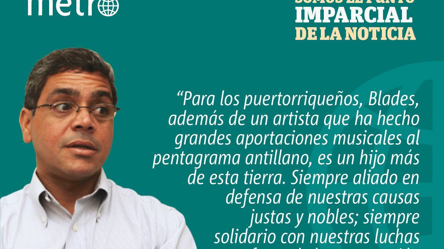 Para los puertorriqueños, Blades, además de un artista que ha hecho grandes aportaciones musicales al pentagrama antillano, es un hijo más de esta tierra. Siempre aliado en defensa de nuestras causas justas y nobles; siempre solidario con nuestras luchas a favor de la construcción de una sociedad más democrática, justa y equitativa.