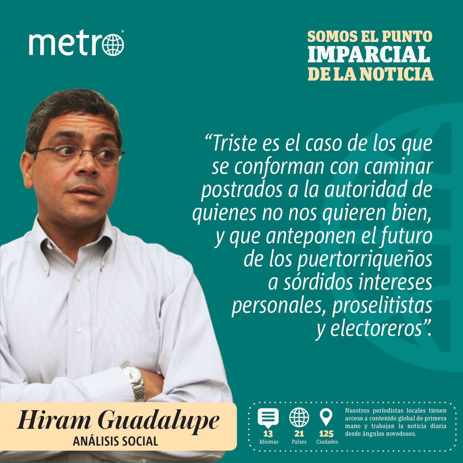 Triste es el caso de los que se conforman con caminar postrados a la autoridad de quienes no nos quieren bien, y que anteponen el futuro de los puertorriqueños a sórdidos intereses personales, proselitistas y electoreros. Peor aún, resulta infausta su ambigua oscilación ideológica cuando intentan justificar su inmovilismo.