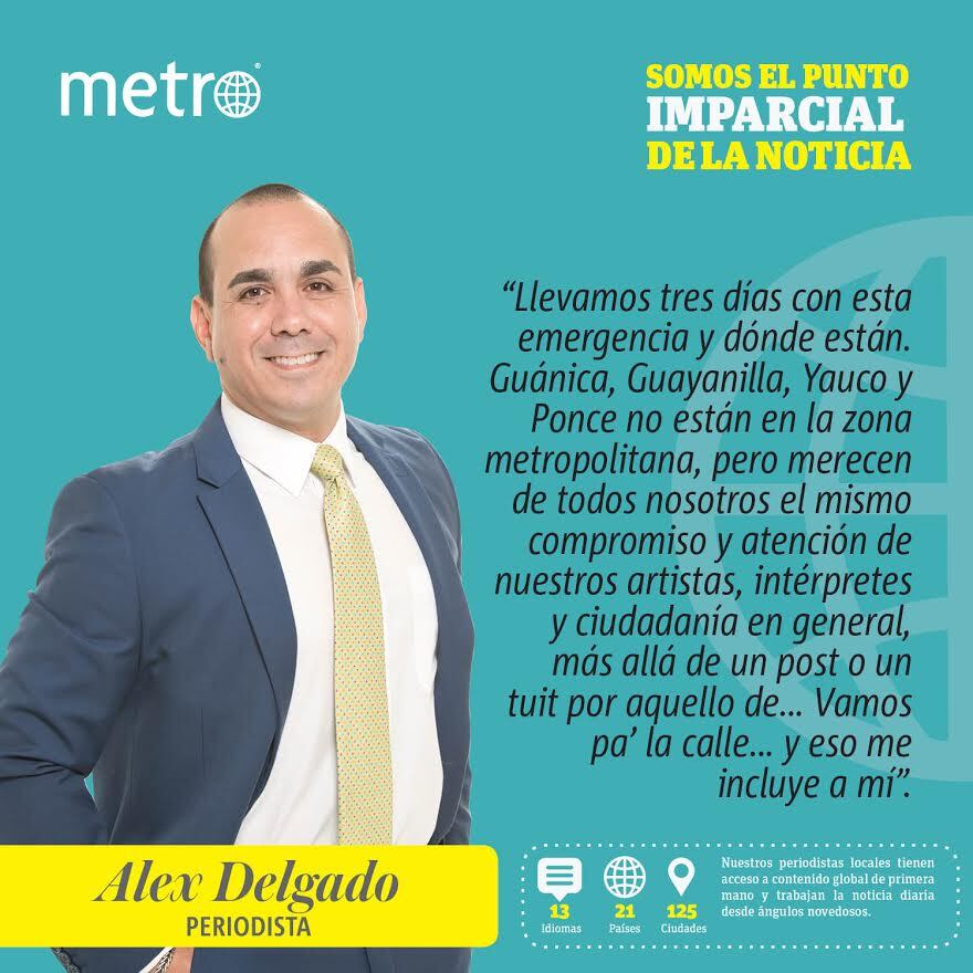 Llevamos tres días con esta emergencia y ¿dónde están?. Guánica, Guayanilla, Yauco y Ponce no están en la zona metropolitana, pero merecen de todos nosotros el mismo compromiso y atención de nuestros artistas, intérpretes y ciudadanía en general, más allá de un post o un tweet por aquello de… Vamos pa’ la calle… y eso me incluye a mí. No hagamos solo “patriotismo de redes”, no nos limitemos a un “patriotismo selectivo” solo para un asunto político y/o ideológico y mucho menos, hagamos “patriotismo” desde San Juan o alguna lujosa propiedad.