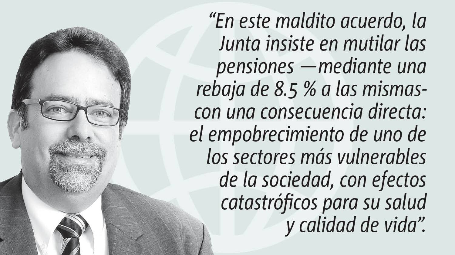 En este maldito acuerdo, la Junta insiste en mutilar las pensiones —mediante una rebaja de 8.5 % a las mismas- con una consecuencia directa: el empobrecimiento de uno de los sectores más vulnerables de la sociedad, con efectos catastróficos para su salud y calidad de vida.
