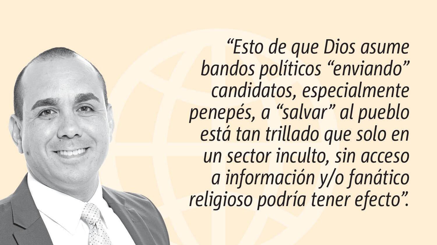 Esto de que Dios asume bandos políticos “enviando” candidatos, especialmente penepés, a “salvar” al pueblo, está tan trillado que solo en un sector inculto, sin acceso a información y/o fanático religioso podría tener efecto. El problema es que hoy hay acceso casi ilimitado a información y que el fanatismo, ya sea religioso y/o político, considero que es cada vez menor.