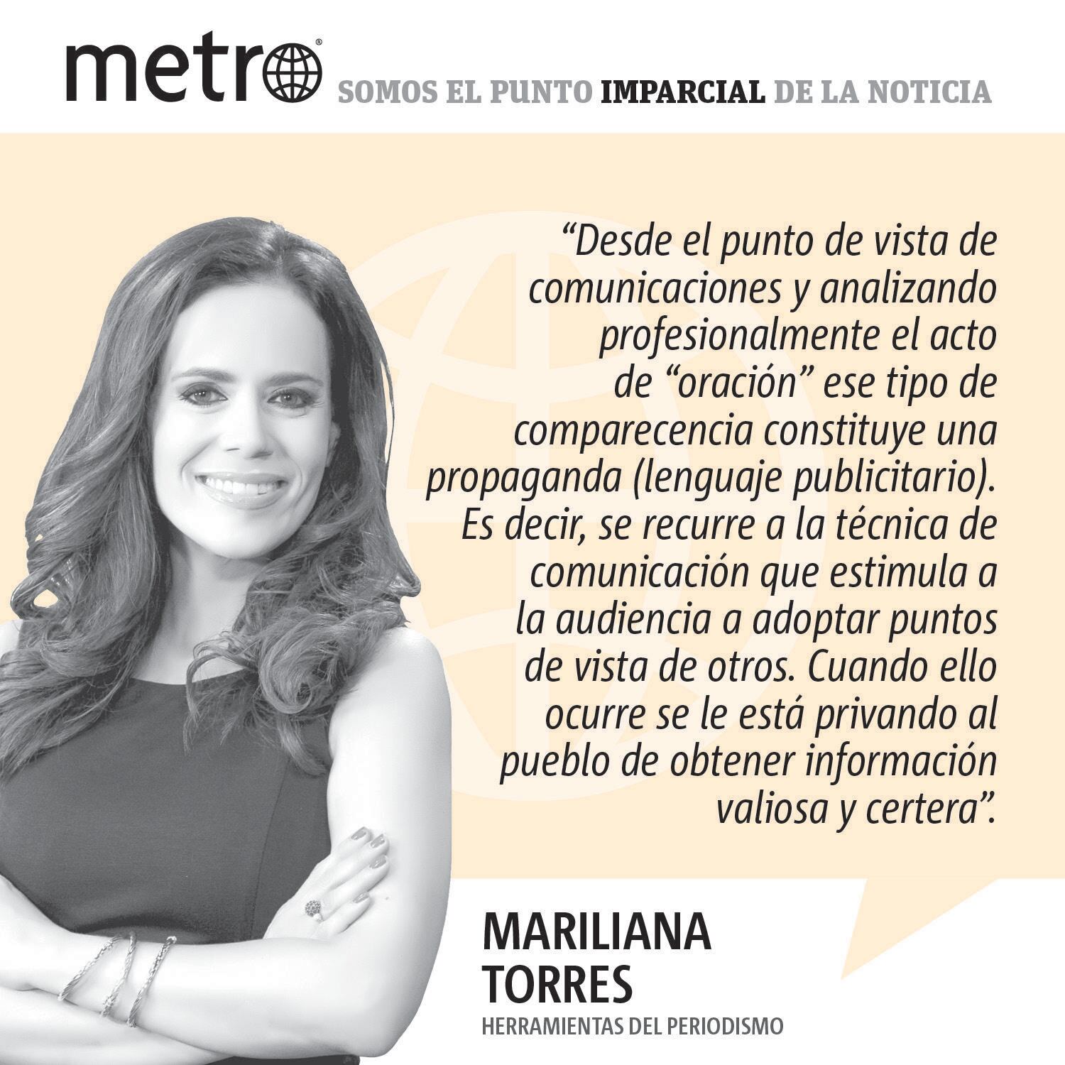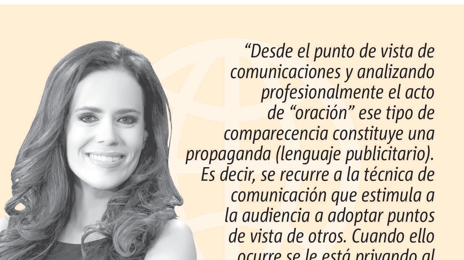 Desde el punto de vista de comunicaciones y analizando profesionalmente el acto de “oración” ese tipo de comparecencia constituye una propaganda (lenguaje publicitario). Es decir, se recurre a la técnica de comunicación que estimula a la audiencia a adoptar puntos de vista de otros. Cuando ello ocurre se le está privando al pueblo de obtener información valiosa y certera. En esta coyuntura es necesario que los periodistas puedan acceder a documentos certeros y a entrevistas donde las preguntas sean contestadas. Es pertienente promover de forma urgente qué es lo que el gobierno está haciendo ante el miedo del contagio y la desesperación que causa la no asociación.