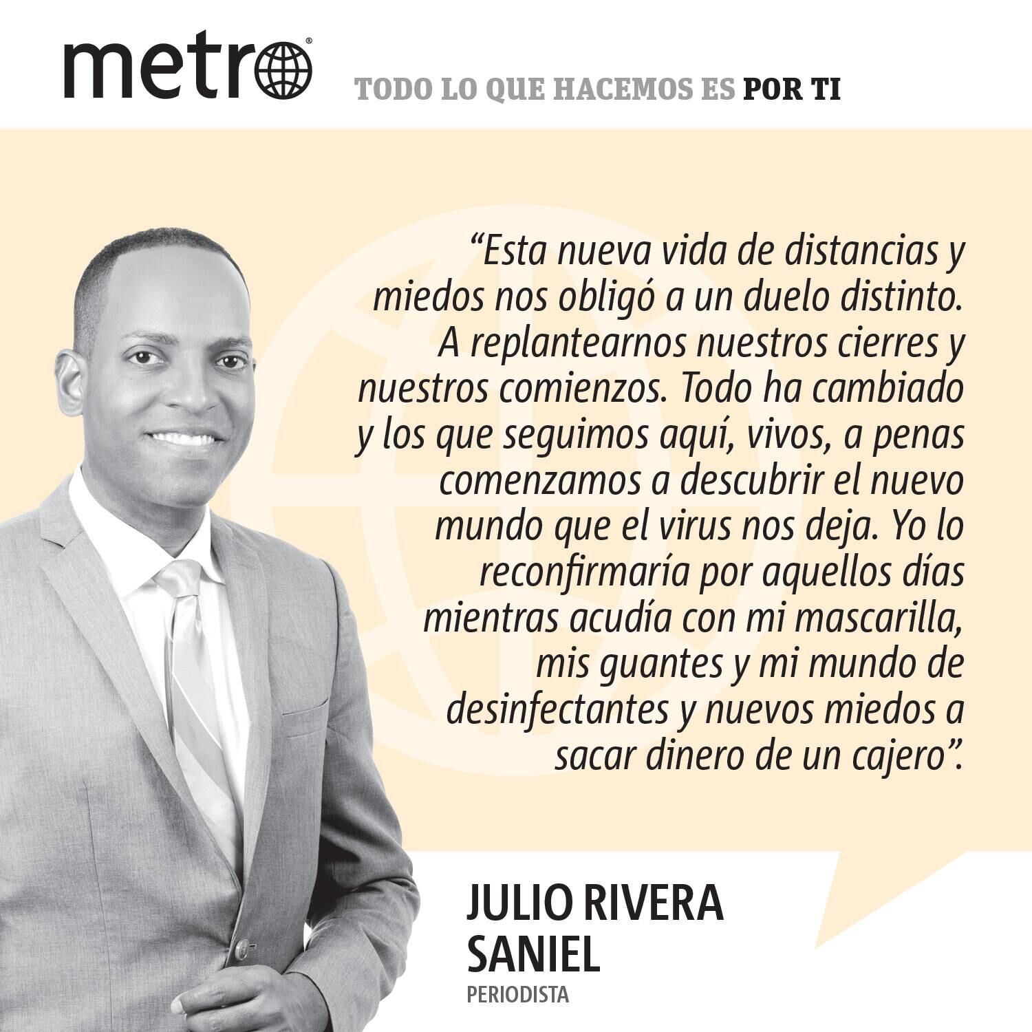 Esta nueva vida de distancias y miedos nos obligó a un duelo distinto. A replantearnos nuestros cierres y nuestros comienzos. Todo ha cambiado y los que seguimos aquí, vivos, apenas comenzamos a descubrir el nuevo mundo que el virus nos deja. Yo lo reconfirmaría por aquellos días mientras acudía con mi mascarilla, mis guantes y mi mundo de desinfectantes y nuevos miedos a sacar dinero de un cajero. Al terminar, me topé con la mirada de un hombre y una mujer que, sin bajarse del carro, me rogaban por dinero para comprarle los panales a su bebé que aguardaba sonreído, desentendido, en el asiento protector. Protegido de la realidad que golpeaba en la cara a sus padres. “Me despidieron por el COVID y hace un mes que no cobro”, me dijo el hombre intentando contener las lágrimas. Sí. Todo cambió y de todas las maneras posibles. Ahora nos toca encontrar y enfrentar nuestra nueva normalidad.