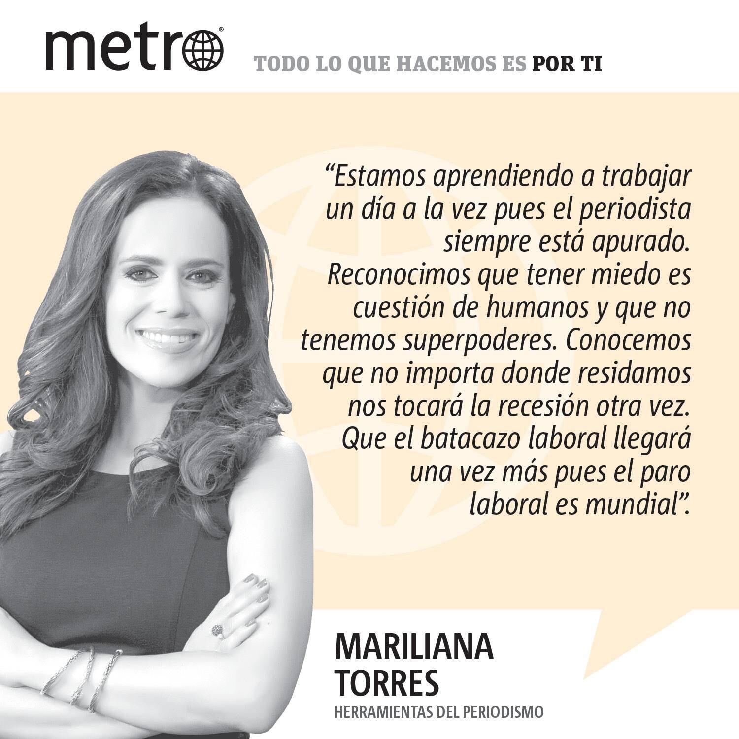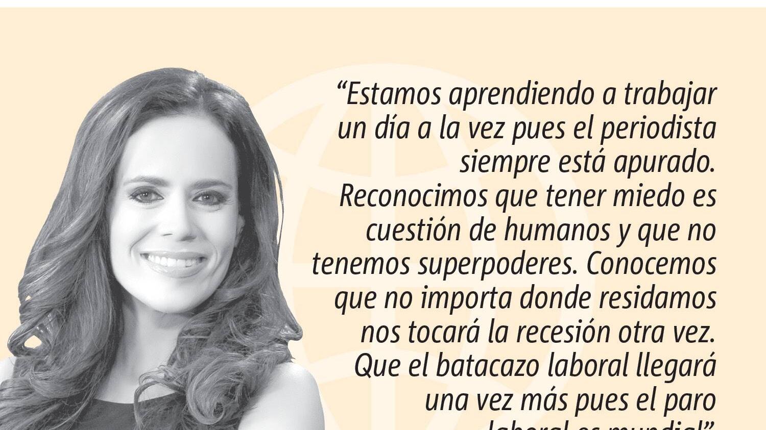 prendemos a valorizar nuestro trabajo pues anticipamos que muchos no llegarán a su meta por la fragilidad del sistema y la crisis económica. Valorizamos aún más el personal sanitario y reconocemos su compromiso. También estamos aprendiendo a reinventarnos y mostrarle al mundo que aunque estamos trabajando en una sociedad en riesgo constante estamos dispuestos a seguir en primera fila por los valores del periodismo. Si hay algo que hemos aprendido es que los periodistas hoy más que nunca somos necesarios.