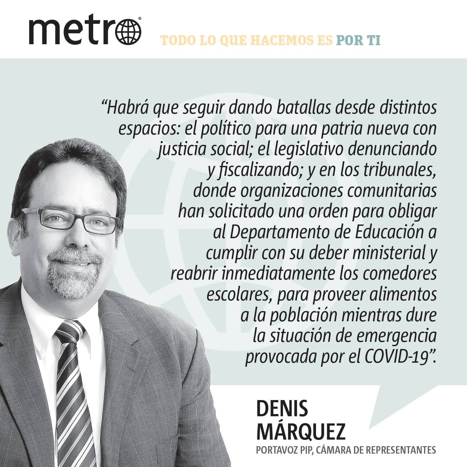 Habrá que seguir dando batallas desde distintos espacios: el político para una patria nueva con justicia social; el legislativo denunciando y fiscalizando; y en los tribunales, donde organizaciones comunitarias han solicitado una orden para obligar al Departamento de Educación a cumplir con su deber ministerial y reabrir inmediatamente los comedores escolares, para proveer alimentos a la población mientras dure la situación de emergencia provocada por el COVID-19.