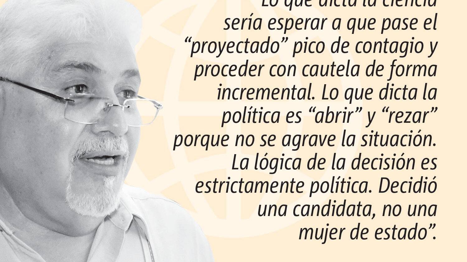 La decisión de reabrir—justo en los días previos al “pico” de la epidemia es claramente política. La CANDIDATA Wanda Vázquez cede a presiones de izquierda y derecha. Lo anuncia el 30 de abril, justo antes de las protestas del 1ro de mayo. La gente está en la calle protestando contra un gobierno “inepto”, “corrupto”, “negligente” –escoja usted el adjetivo. Por otro lado, los/as empresarios/as, donantes de partidos y campañas, exigen la reapertura. Lo que dicta la ciencia sería esperar a que pase el “proyectado” pico de contagio y proceder con cautela de forma incremental. Lo que dicta la política es “abrir” y “rezar” porque no se agrave la situación. La lógica de la decisión es estrictamente política. Decidió una candidata, no una mujer de estado.