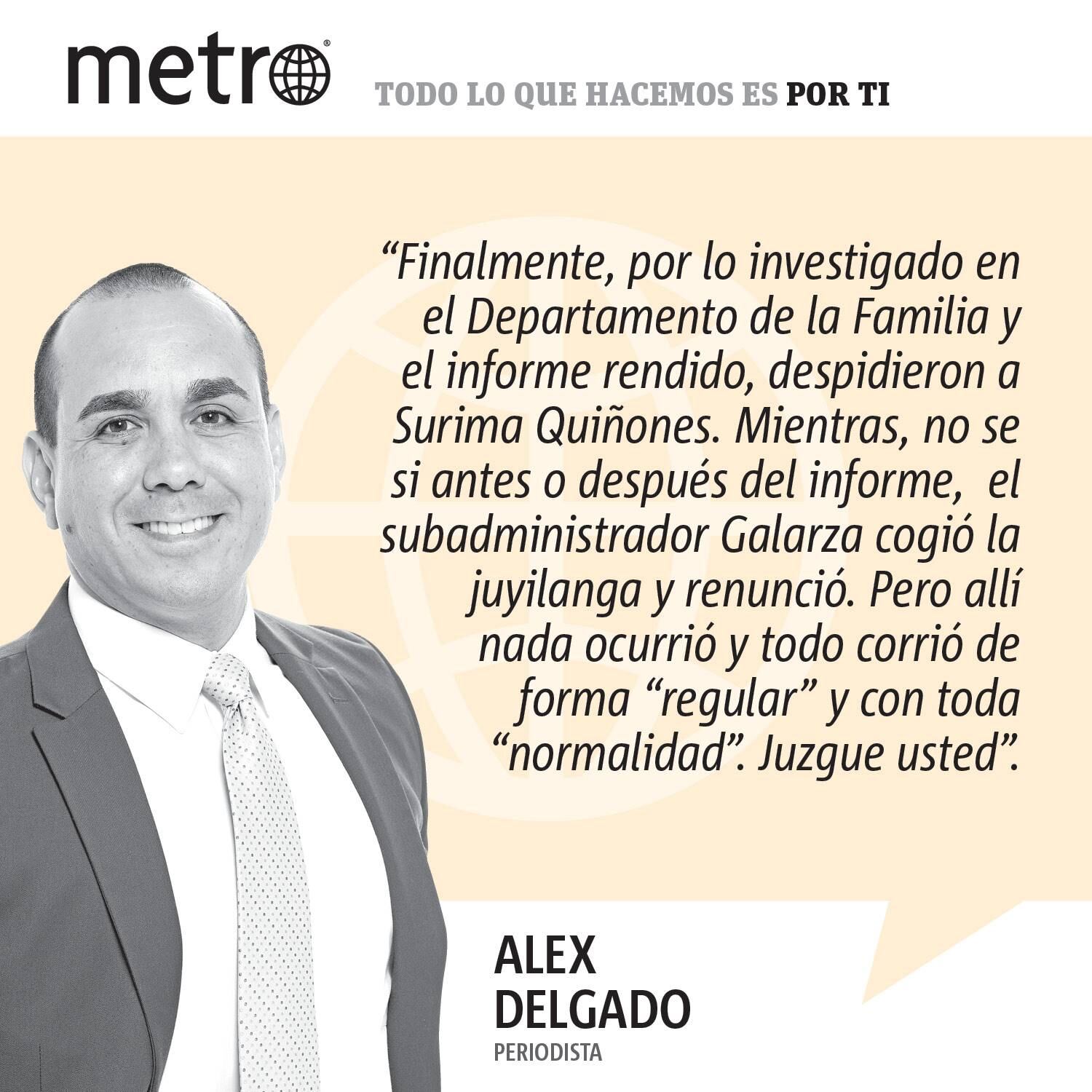 Finalmente, por lo investigado en el Departamento de la Familia y el informe rendido, despidieron a Surima Quiñones. Mientras, no se si antes o después del informe, el subadministrador Galarza cogió la juyilanga y renunció. Pero allí nada ocurrió y todo corrió de forma “regular” y con toda “normalidad”. Juzgue usted.