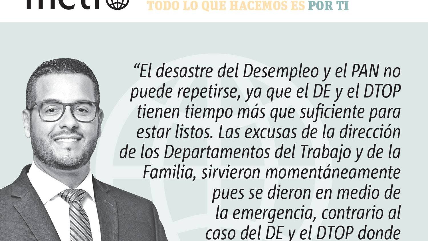 Las excusas de la dirección de los Departamentos del Trabajo y de la Familia, sirvieron momentáneamente pues se dieron en medio de la emergencia, contrario al caso del DE y el DTOP donde simplemente no hay espacio para excusas. Secretarios; tienen tiempo para ejecutar acciones eficientes, no repitan el horror que hemos vivido con el desempleo y el PAN.