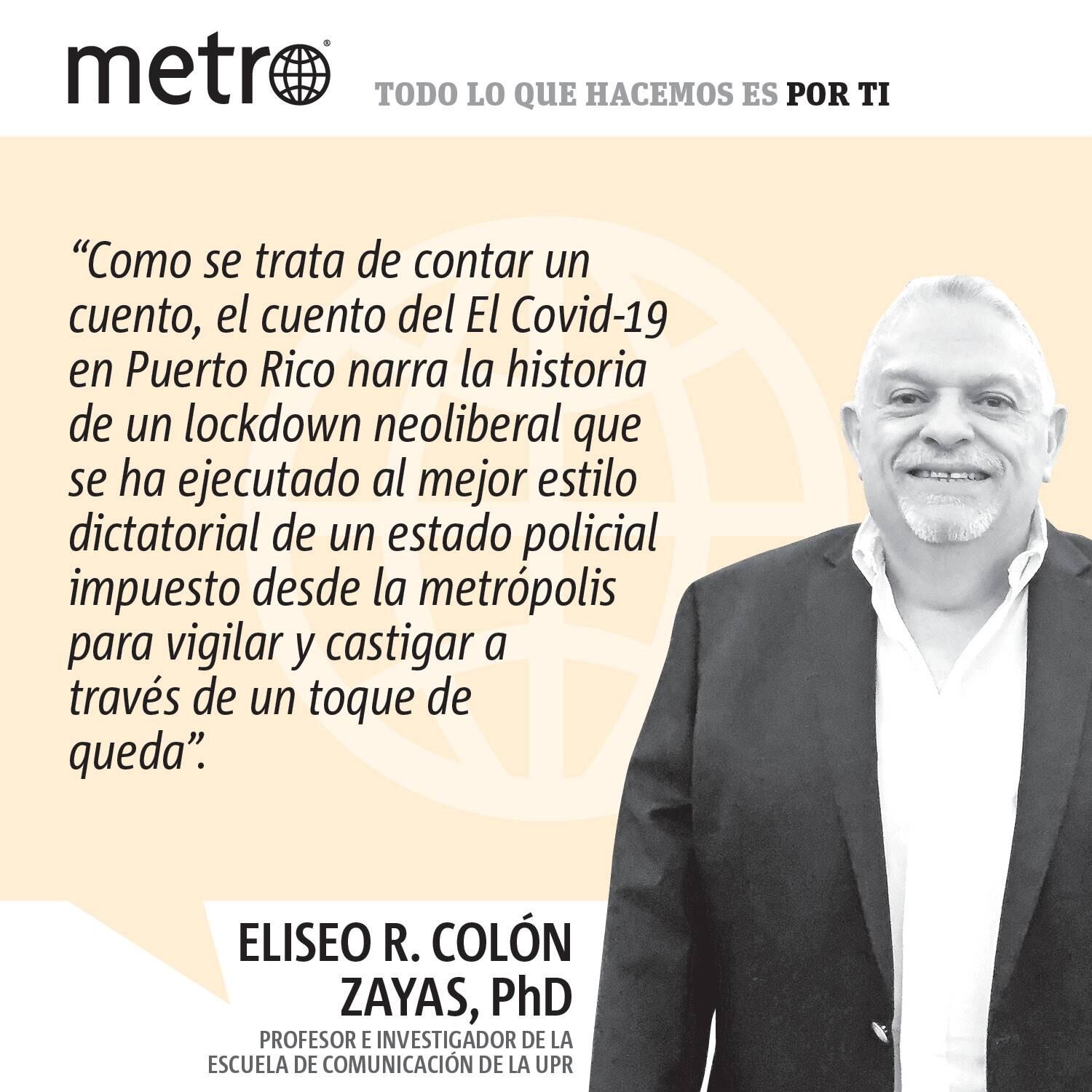 Como se trata de contar un cuento, el cuento del El Covid-19 en Puerto Rico narra la historia de un lockdown neoliberal que se ha ejecutado al mejor estilo dictatorial de un estado policial impuesto desde la metrópolis para vigilar y castigar a través de un toque de queda. ¿Cómo volveremos a socializar a la vez que mantenemos las reglas que el buen ordenamiento sanitario exige para controlar el virus? Habrá que ver. Pero, por suerte, muchos nos apartamos del lockdown carcelario del gobierno y vivimos un confinamiento como entes sociales y en sociedad. Confío en que nuestro afán caribeño socializador y socializante, tan temido por muchos, pueda más que semanas encerrados en un lockdown denigrante impuesto por un gobierno que aún se atreve a mantener el toque de queda como único recurso que tiene para mantener el poder. ¡Jum!