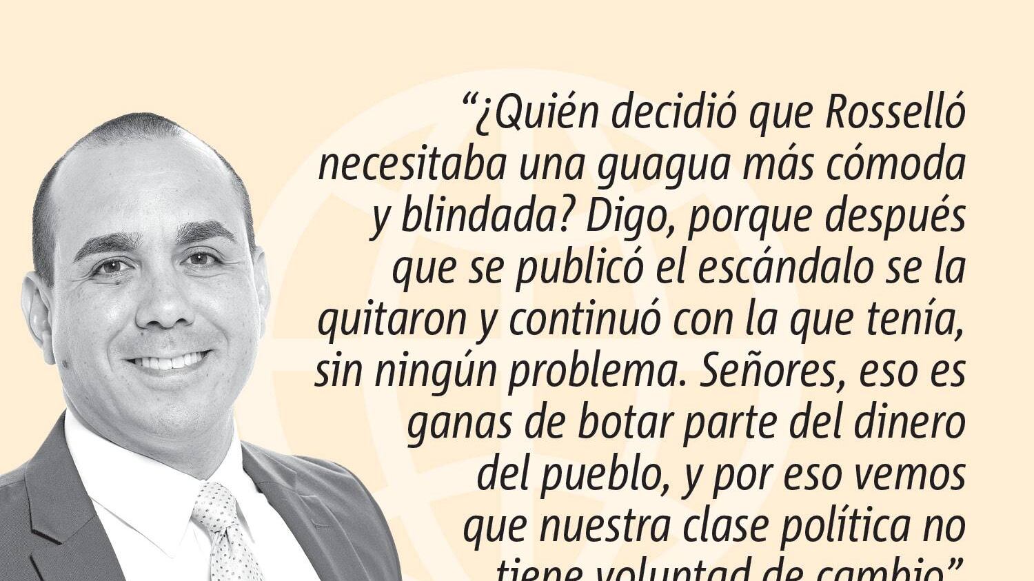 ¿Quién decidió que Rosselló necesitaba una guagua más cómoda y blindada? Digo, porque después que se publicó el escándalo se la quitaron y continuó con la que tenía, sin ningún problema. Señores, eso es ganas de botar parte del dinero del pueblo, y por eso vemos que nuestra clase política no tiene voluntad de cambio.