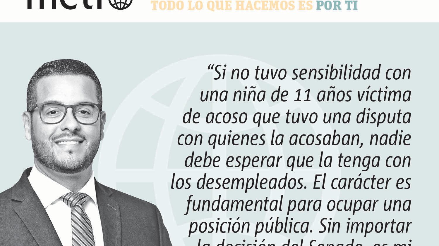 La Ley 205-2004 creó la Secretaría Auxiliar de Asuntos de Menores y le delegó la responsabilidad de implementar la política pública establecida en la Ley de Menores. Dicha Ley adoptó como marco filosófico del sistema de justicia juvenil el humanismo dentro de un enfoque rehabilitador. Esta Ley reconoce los derechos del menor transgresor y garantiza un proceso justo, rápido y eficaz. Asimismo, dispone que los procuradores de menores podrán solicitar el archivo de una querella si la misma no es legalmente suficiente para iniciar un proceso. De igual forma, la Ley 205 establece que el Secretario Auxiliar supervisará la labor de los procuradores. Así pues, entre los deberes ministeriales del secretario se encontraba el de supervisar a los procuradores y, por tanto, ordenarles solicitar el archivo de una querella insuficiente. No lo hizo. Le falló a su deber ministerial. Si no tuvo sensibilidad con una niña de 11 años víctima de acoso que tuvo una disputa con quienes la acosaban, nadie debe esperar que la tenga con los desempleados. El carácter es fundamental para ocupar una posición pública. Sin importar la decisión del Senado, es mi parecer que el carácter del nominado lo descalifica.