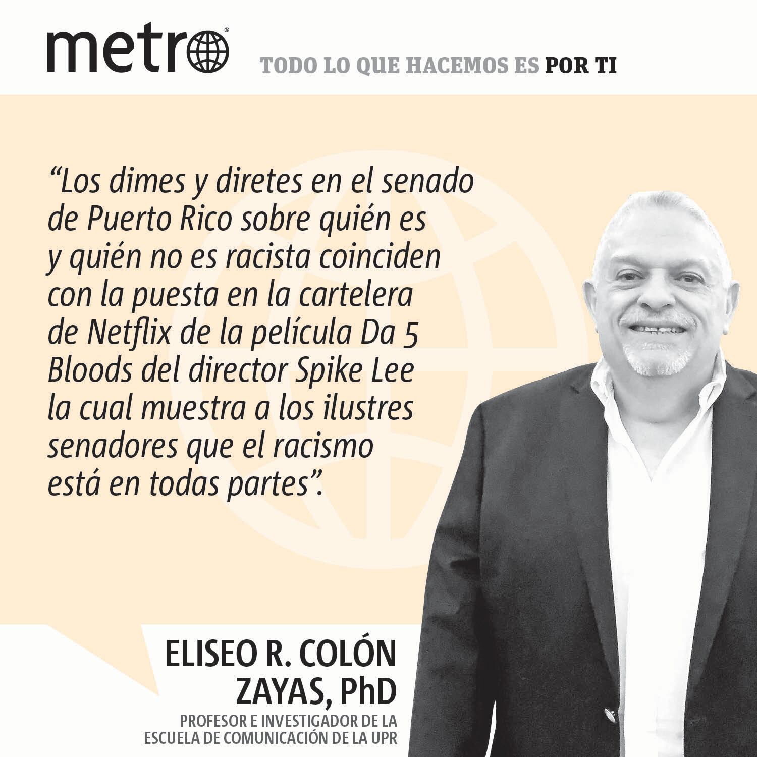 “Además de que, obviamente, yo soy negro” fueron palabras de Carlos Rivera Santiago durante una entrevista mientras esperaba su confirmación como secretario del trabajo. Las expresiones se dieron en el contexto de la discusión durante la semana del 15 de junio que intentaba aclarar si tuvo un sesgo racista su gestión como director de la procuraduría de menores al procesar a una estudiante de 11 años de educación especial. Finalmente, Rivera Santiago fue confirmado luego de que el comité nominador concluyera que no quedaba demostrado racismo en su gestión. Por suerte, los dimes y diretes en el senado de Puerto Rico sobre quién es y quién no es racista coinciden con la puesta en la cartelera de Netflix de la película Da 5 Bloods del director Spike Lee la cual muestra a los ilustres senadores que el racismo está en todas partes.