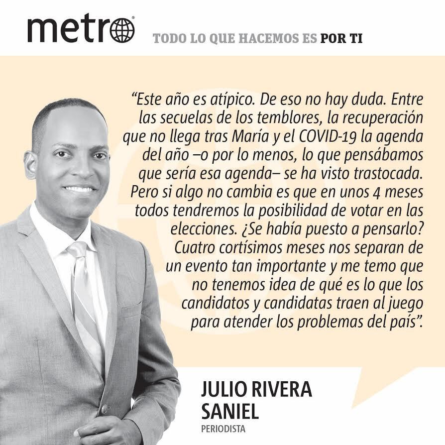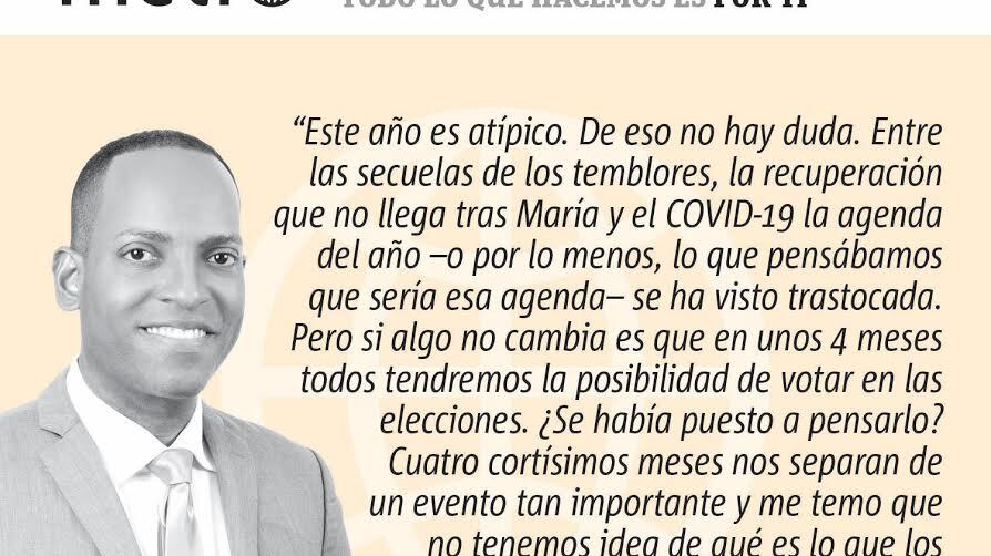Este año es atípico. De eso no hay duda. Entre las secuelas de los temblores, la recuperación que no llega tras María y el COVID-19 la agenda del año – o por lo menos, lo que pensábamos que sería esa agenda- se ha visto trastocada. Pero si algo no cambia es que en unos 4 meses todos tendremos la posibilidad de votar en las elecciones. ¿Se había puesto a pensarlo? Cuatro cortísimos meses nos separan de un evento tan importante y me temo que no tenemos idea de qué es lo que los candidatos y candidatas traen al juego para atender los problemas del país.