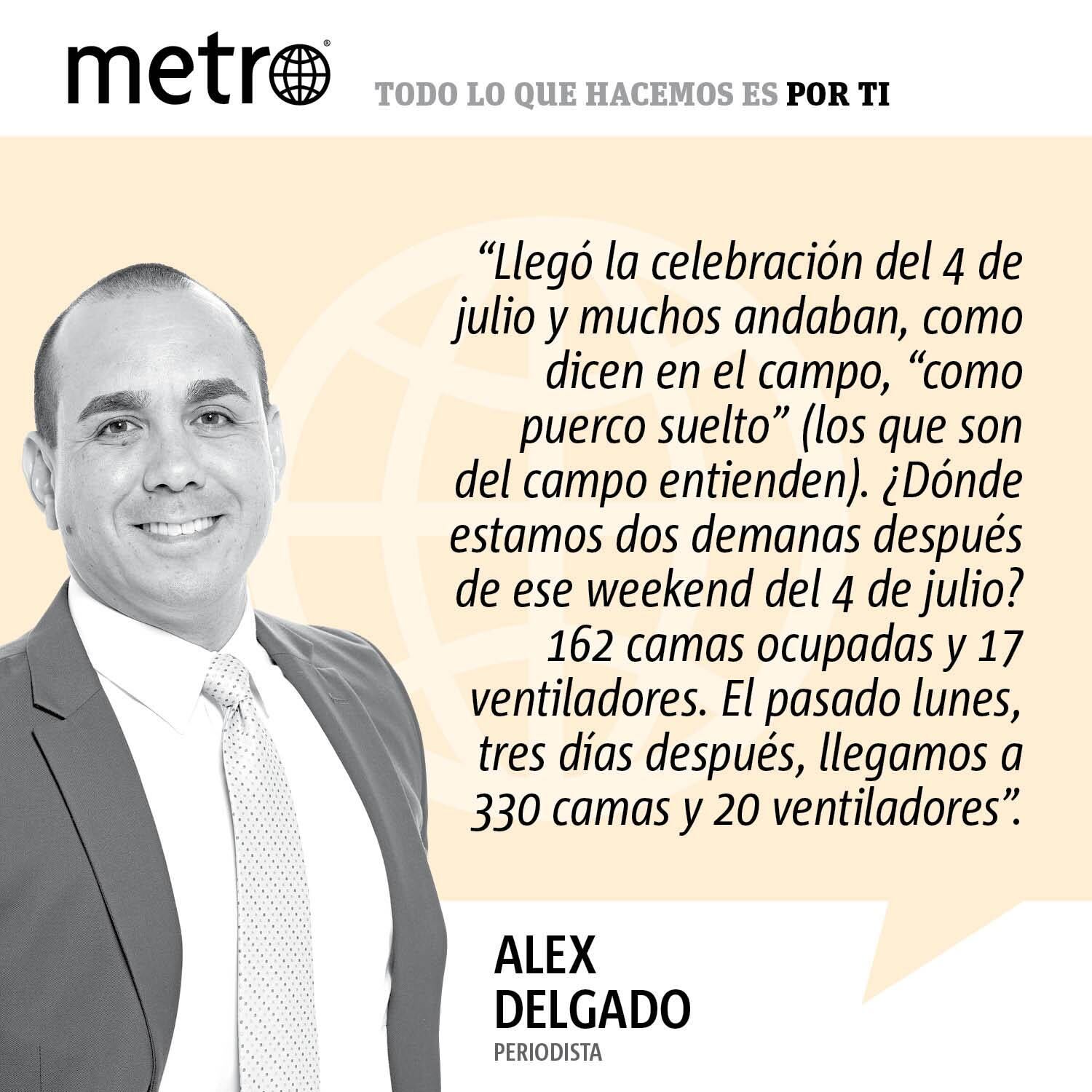 Llegó la celebración del 4 de julio y muchos andaban, como dicen en el campo, “como puerco suelto” (los que son del campo entienden). ¿Dónde estamos dos demanas después de ese weekend del 4 de julio? 162 camas ocupadas y 17 ventiladores. El pasado lunes, tres días después, llegamos a 330 camas y 20 ventiladores.