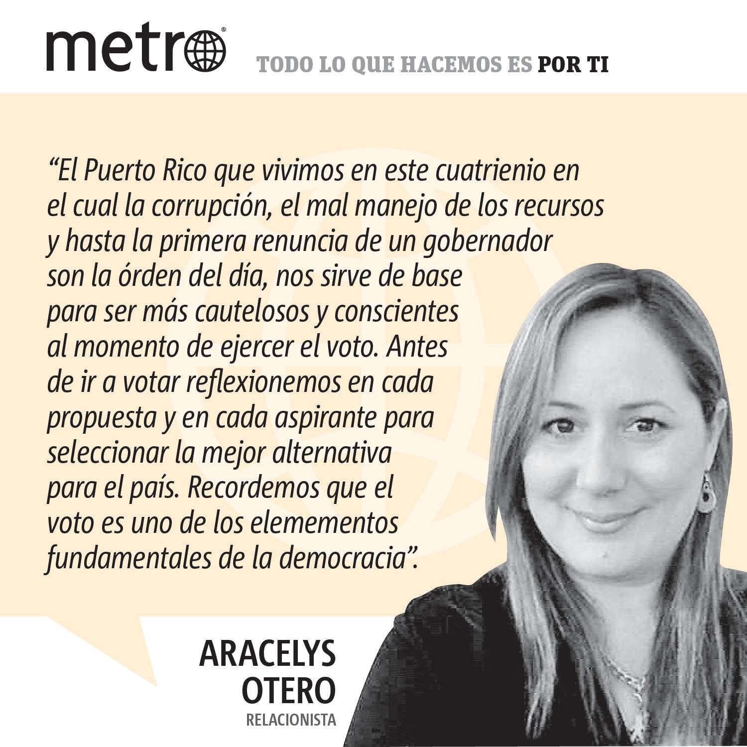 El Puerto Rico que vivimos en este cuatrienio en el cual la corrupción, el mal manejo de los recursos y hasta la primera renuncia de un gobernador son la órden del día, nos sirve de base para ser más cautelosos y conscientes al momento de ejercer el voto. Antes de ir a votar reflexionemos en cada propuesta y en cada aspirante para seleccionar la mejor alternativa para el país. Recordemos que el voto es uno de los elemementos fundamentales de la democracia. En la primaria del 9 de agosto, no dejes que escojan por ti. Sal y vota.
