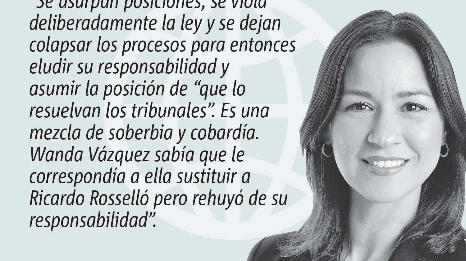 De esto hay distintas versiones que van desde el “me vale” de Alejandro García Padilla hasta el “que lo lleven a los foros” pertinentes de Thomas Rivera Schatz. Se usurpan posiciones, se viola deliberadamente la ley y se dejan colapsar los procesos para entonces eludir su responsabilidad y asumir la posición de “que lo resuelvan los tribunales”. Es una mezcla de soberbia y cobardía. Wanda Vázquez sabía que le correspondía a ella sustituir a Ricardo Rosselló pero rehuyó de su responsabilidad. Así, Pedro Pierluisi usurpó el cargo del depuesto gobernador provocando que la sucesión fuera decidida por el Tribunal Supremo. Ante la falta de voluntad, asuntos políticos complejos terminan resolviéndose por la vía judicial. Para ver nuestras propuestas para resolver estos problemas puedes visitar rosasegui.com