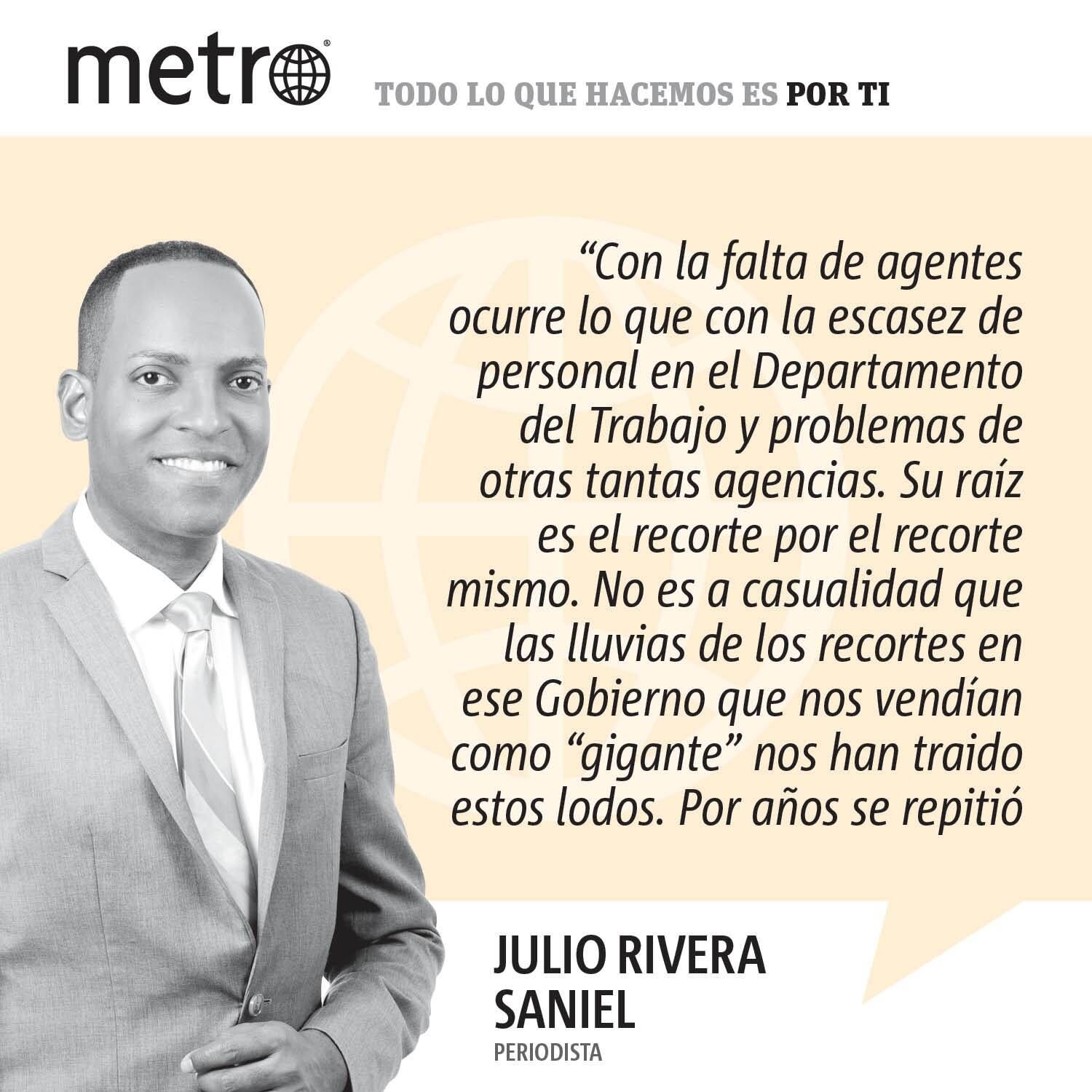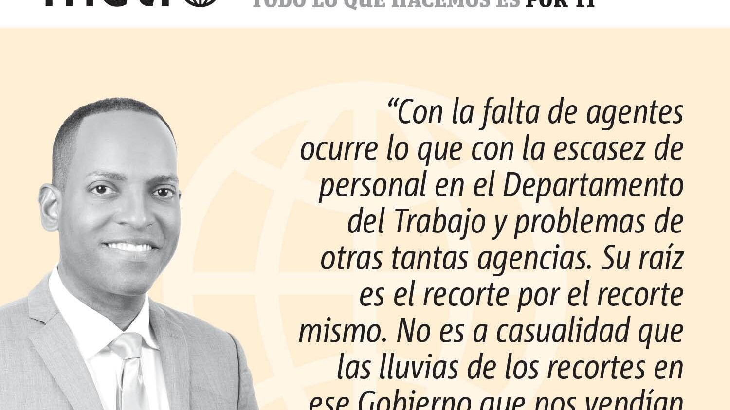 Con la falta de agentes ocurre lo que con la escasez de personal en el Departamento del Trabajo y problemas de otras tantas agencias. Su raíz es el recorte por el recorte mismo. No es casualidad que las lluvias de los recortes en ese Gobierno que nos vendían como “gigante” nos han traído estos lodos. Por años se repitió como mantra que nuestro Gobierno era enorme.