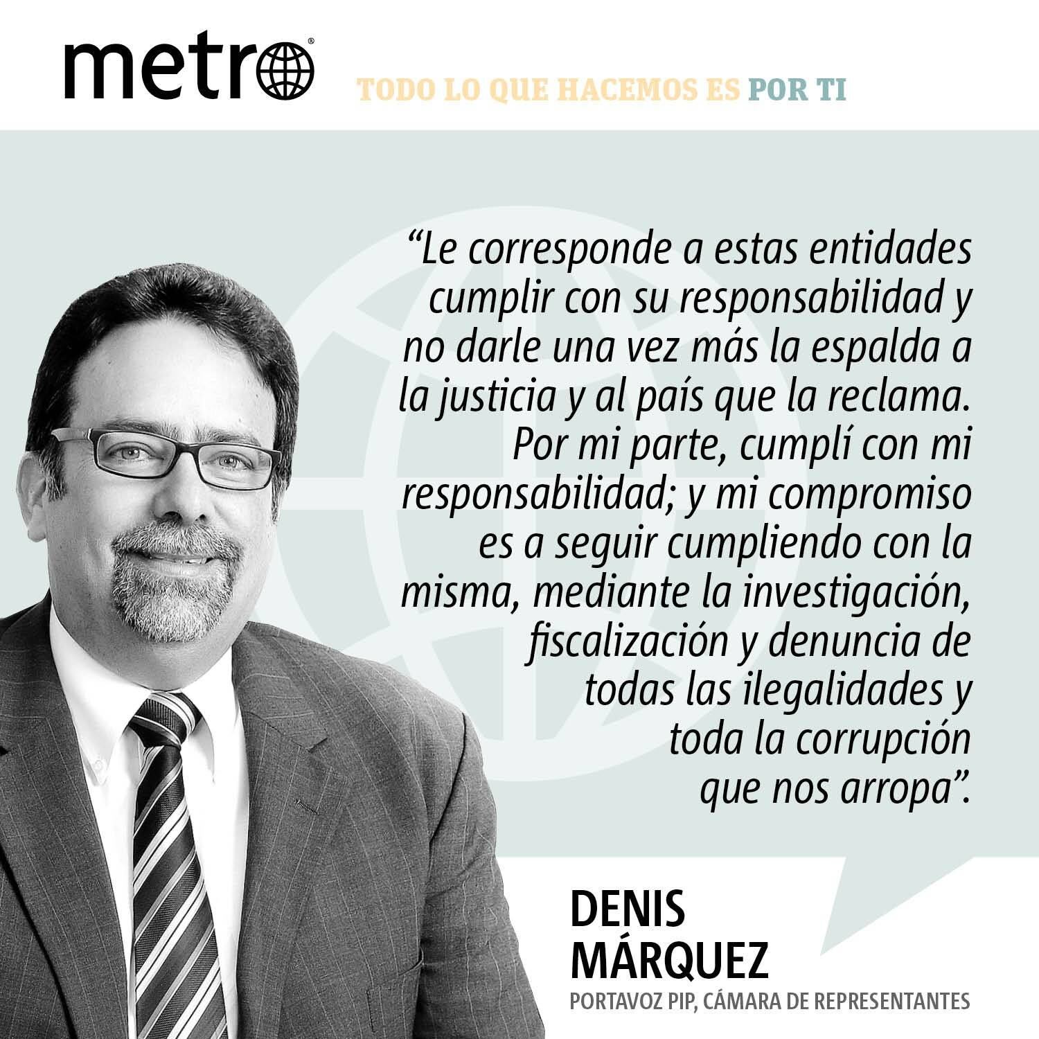 Le corresponde a estas entidades cumplir con su responsabilidad y no darle una vez más la espalda a la justicia y al país que la reclama. Por mi parte, cumplí con mi responsabilidad; y mi compromiso es a seguir cumpliendo con la misma, mediante la investigación, fiscalización y denuncia de todas las ilegalidades y toda la corrupción que nos arropa.