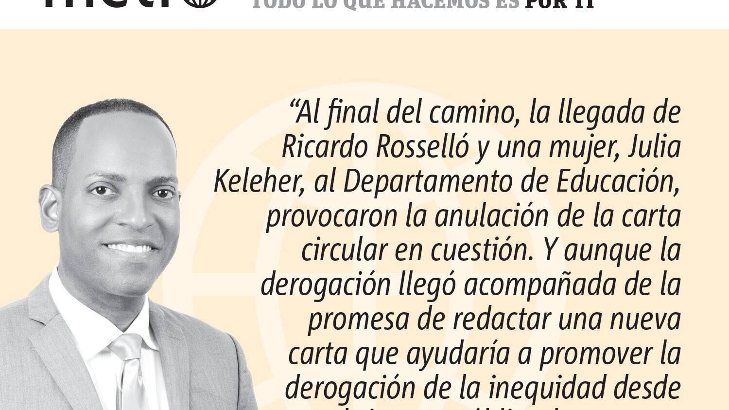 Al final del camino, la llegada de Ricardo Rosselló y una mujer, Julia Keleher, al Departamento de Educación, provocaron la anulación de la carta circular en cuestión.