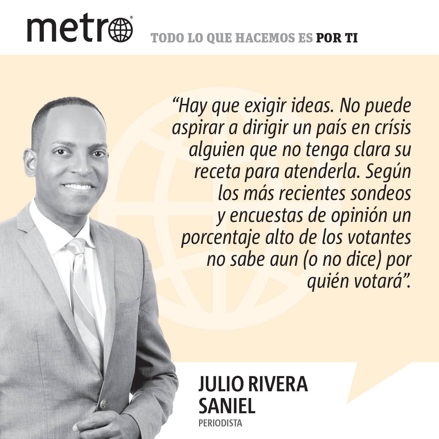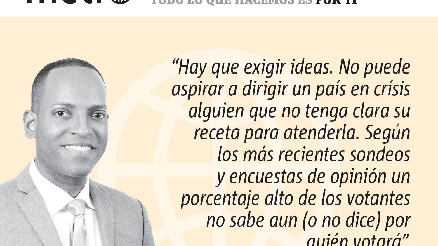 Hay que exigir ideas. No puede aspirar a dirigir un país en crísis alguien que no tenga clara su receta para atenderla. Según los más recientes sondeos y encuestas de opinión un porcentaje alto de los votantes no sabe aun (o no dice) por quién votará. Pero, de la misma forma, otros miles ya dicen estar decididos. Si usted es uno de ellos, pregúntese, ¿por qué esas personas se llevarán su voto? Usted, ¿ya leyó sus propuestas? ¿Puede constestar cuáles son esas ideas que le convencieron de querer entregar su voto? ¿Sabe usted cuáles son las propuestas de los caniddatos sobre temas neurálgicos como economía o salud? ¿Sabe cuál es el plan de los canidatos y cnaiddatas para atender las lagunas que sus hijos en el sistema público arrastran luego de los tropiezos que ha enfrentado la educación a distancia? ¿Conoce cuáles son las posturas de los que aspiran a cargos públicos sobre temas que conicernen a sus derechos y a los de otros? Sea honestx. ¿Relamenta sabe por qué votará como piensa que lo hará?