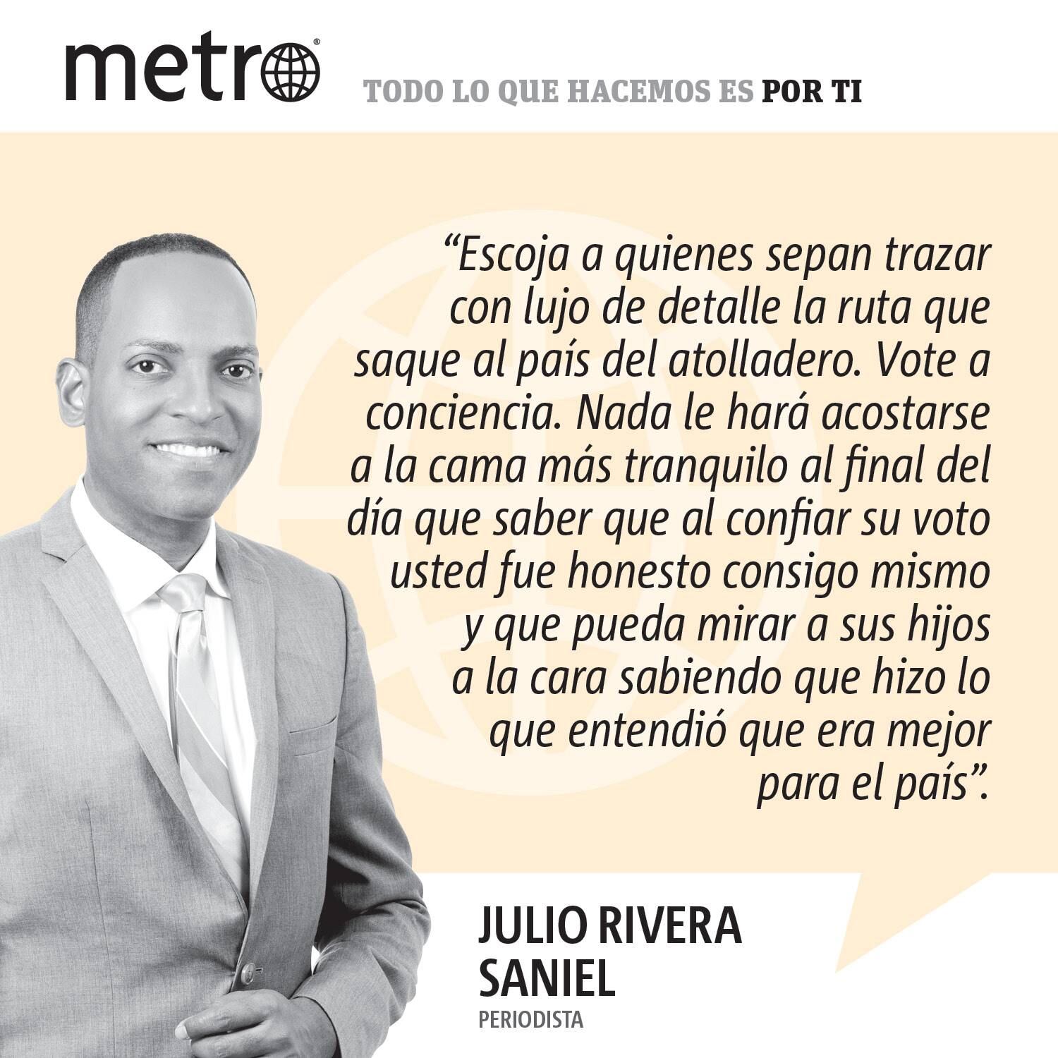 En definitivas cuentas, si busca razones para votar, vote por usted. Vote por los hombres y mujeres que -luego de un análisis ponderado- tienen las ideas que atienden sus inquietudes. Vote por aquellos que le convencen con ideas. Con propuestas específicas y no con esas listas de deseos que dicen mucho pero no dicen nada. Vote tomando en cuenta su futuro pero, principalmente, el futuro de los suyos. Escoja a quienes sepan trazar con lujo de detalle la ruta que saque al país del atolladero. Vote a conciencia. Nada le hará acostarse a la cama más tranquilo al final del día que saber que al confiar su voto usted fue honesto consigo mismo y que pueda mirar a sus hijos a la cara sabiendo que hizo lo que entendió que era mejor para el país.