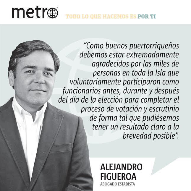 Como buenos puertorriqueños debemos estar extremadamente agradecidos por las miles de personas en toda la Isla que voluntariamente participaron como funcionarios antes, durante y después del día de la elección para completar el proceso de votación y escrutinio de forma tal que pudiésemos tener un resultado claro a la brevedad posible. A medida que nos acercamos al Día de Acción de Gracias, todos deberíamos estar agradecidos por su compromiso con nuestra democracia.