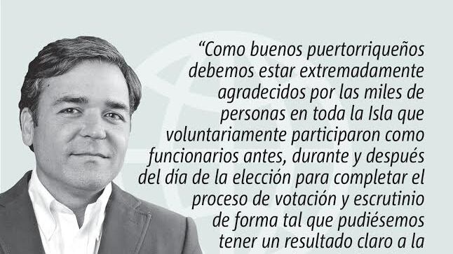 El pasado martes fue el día de las elecciones, un día en que los ciudadanos de toda nuestra Isla ejercieron su derecho a votar por el gobernador, comisionado residente, los miembros de la Asamblea Legislativa, los alcaldes y los legisladores municipales. Más de 1.2 millones de personas participaron del proceso electoral ese día, o antes de esa fecha en el caso del voto por adelantado, de manera pacífica y ordenada.