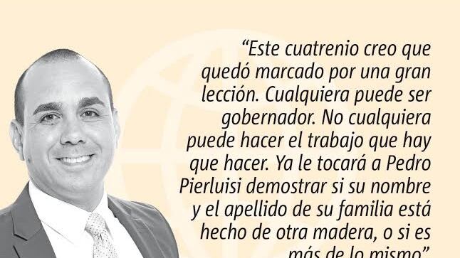 Este cuatrenio creo que quedó marcado por una gran lección. Cualquiera puede ser gobernador. No cualquiera puede hacer el trabajo que hay que hacer. Ya le tocará a Pedro Pierluisi demostrar si su nombre y el apellido de su familia está hecho de otra madera, o si es más de lo mismo.