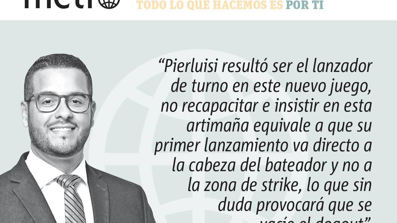 El gobernador electo aún está a tiempo para recapacitar y demostrar que respeta a quienes al igual que él hemos sido electos para trabajar en un nuevo gobierno a partir del 2 de enero de 2021. Pierluisi resultó ser el lanzador de turno en este nuevo juego, no recapacitar e insistir en esta artimaña equivale a que su primer lanzamiento va directo a la cabeza del bateador y no a la zona de strike, lo que sin duda provocará que se vacíe el “dogout”.