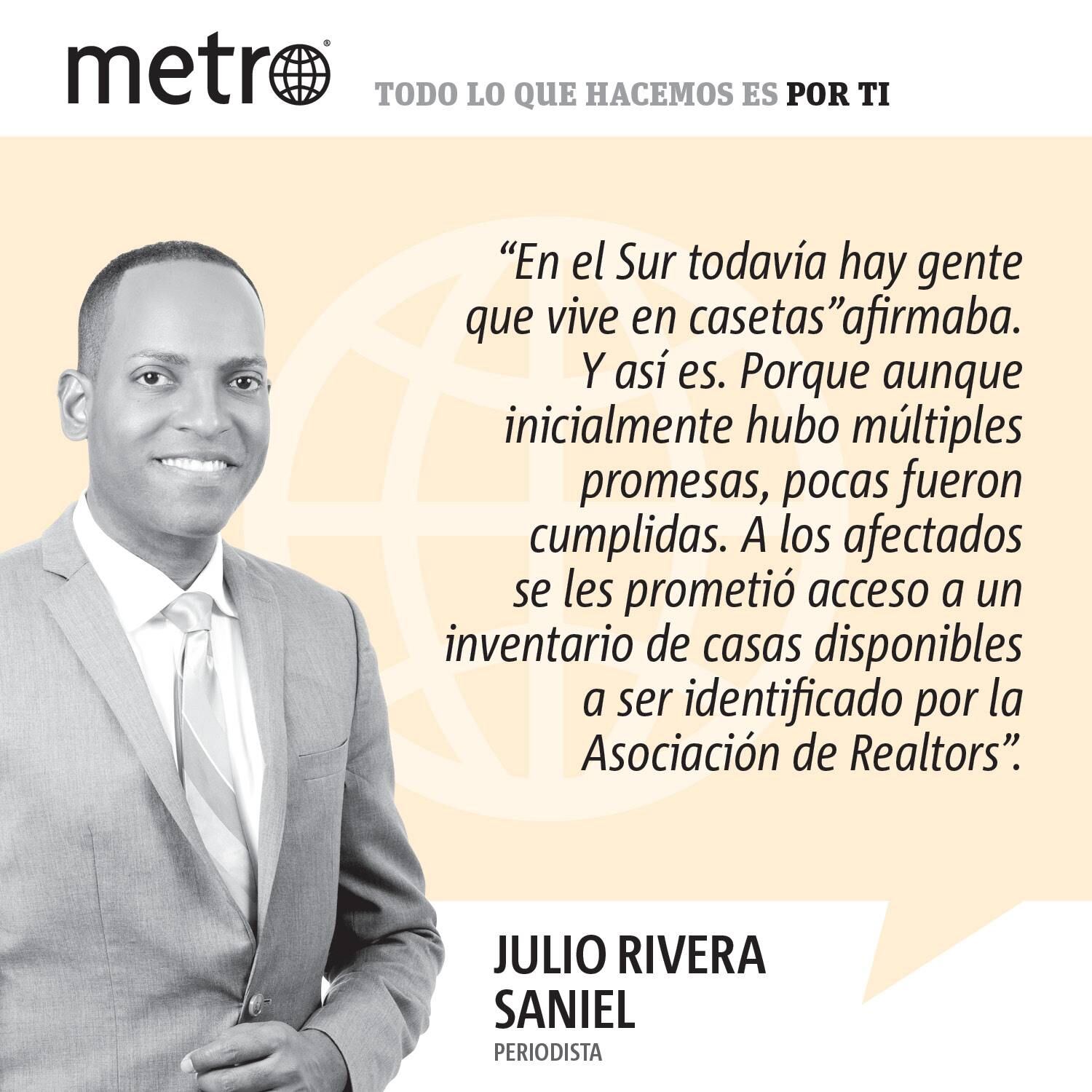 La semana pasada el país recordaba que precisamente hace un año un terremoto de grandes proporciones sacudió el Sur del país. Para muchos recordar lo ocurrido era innecesario. Yo mismo contesté algunos comentarios de más de un cibernauta para quien hablar del tema de los terremotos era un ejercicio innecesario. “¿A quién le importa?” cuestionaba alguno. “Pasen la página” sugería otros con la convicción de aquel para quien su vida marcha en orden. Pero esas exhortaciones a hacernos de la vista larga desde la comodidad de la vida fuera del Sur no solo me parecieron insensibles, sino poco empáticas ante la realidad de decenas de familias. Al final preferí pensar que quienes hacían un llamado a no hablar del tema lo hacían porque a fin de cuentas habían dejado de mirar al Sur justo hace un año. Cualquiera que mire sabrá que allí hay muy poco que mirar. El lunes, en medio de una entrevista en Radio Isla, un líder comunitario lanzó una frase que parecía imposible para muchos pero que evidenciaba el nivel de desamparo que se vive en las calles de muchos sectores de los municipios afectados por los terremotos. En el Sur todavía hay gente que vive en casetas”afirmaba. Y así es. Porque aunque inicialmente hubo múltiples promesas, pocas fueron cumplidas. A los afectados se les prometió acceso a un inventario de casas disponibles a ser identificado por la Asociación de Realtors. El inventario disponible podía contarse con el puño de una mano. También se les prometió una ayuda equivalente a $50 mil por familia afectada que saldrían de un fondo local. Äun los estamos esperando” me dijo hace unas semanas el alcalde de Peñuelas. FEMA también soltó su buena racha de promesas de asistencia. Pero a un año de lo ocurrido allí no ha ocurrido nada. Y eso ha provocado que muchas de las personas cuyas casas fueron marcadas con aquella equis roja que les calificaba de inhabitables, han decidido regresar, realizar algunos arreglos y volver a ocupar las casas que -aunque dañadas- son su único hogar disponible. Ese regreso, según Víctor Huérfano, director de la Red Sísmica de Puerto Rico, puede colocar a esas familias en riesgo y, por ello, hizo un llamado al Gobierno a intervenir cuanto antes.