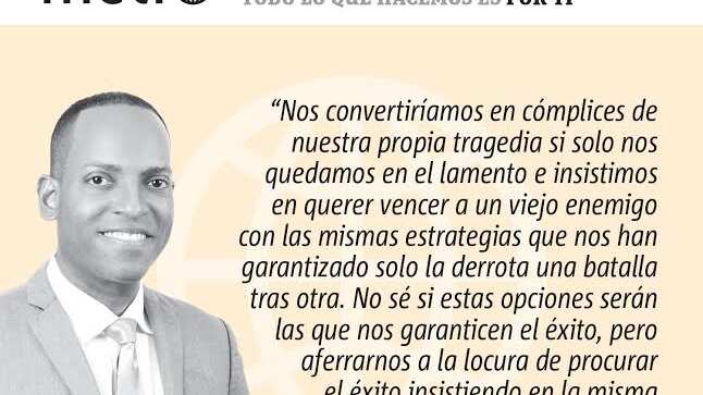 Eso es lo que dice la literatura y la evidencia científica. La moral -esa cosa de la que todos tenemos una- podría prevenirnos siquiera de pensarlo. De dejarnos convencer por la evidencia. PEro en medio de un país en el que el narco nos arrebata vidas a diario, sería un crimen mayor no evaluar opciones -esta u otras- que evidencien resultados. Nos convertiremos en cómplices de nuestra propia tragedia si solo nos quedamos en el lamento e insistimos en querer vencer a un viejo enemigo con las mismas estrategias que nos han garantizado solo la derrota una batalla tras otra. No sé si estas opciones serán las que nos garanticen el éxito, pero aferrarnos a la locura de procurar el éxito insistiendo en la misma fórmula del fracaso no debe ser ni remotamente una opción.