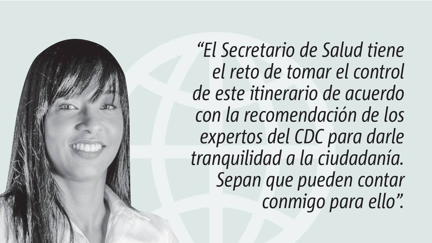 El Secretario de Salud tiene el reto de tomar el control de este itinerario de acuerdo con la recomendación de los expertos del CDC para darle tranquilidad a la ciudadanía. Sepan que pueden contar conmigo para ello.