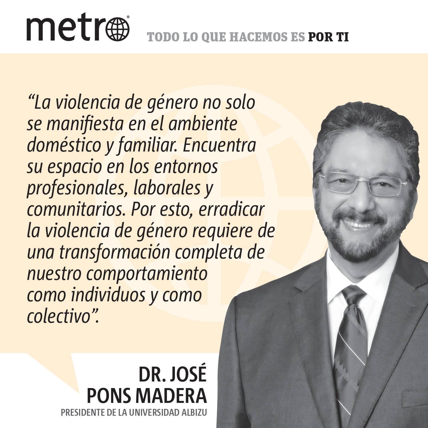 Fomentar los valores de respeto, equidad, libertad y justicia en el entorno académico es fundamental para la creación de ciudadanos razonables. Esta responsabilidad educativa debe vincularse a la educación primaria y secundaria y continuar a lo largo del proceso de formación profesional de cada individuo. La violencia de género no solo se manifiesta en el ambiente doméstico y familiar. Encuentra su espacio en los entornos profesionales, laborales y comunitarios. Por esto, erradicar la violencia de género requiere de una transformación completa de nuestro comportamiento como individuos y como colectivo. Es pertinente aprovechar esta coyuntura para promover una mayor vinculación de nuestras universidades con el estado para que asuman un rol de liderazgo más allá del proceso educativo tradicional, aportando soluciones y dando continuidad a los programas que se desarrollen en esta área. Nosotros aceptamos el reto.