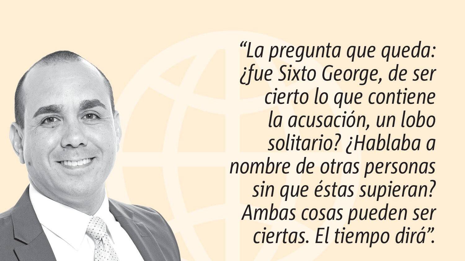 La pregunta que queda: ¿fue Sixto George, de ser cierto lo que contiene la acusación, un lobo solitario? ¿Hablaba a nombre de otras personas sin que éstas supieran? Ambas cosas pueden ser ciertas. El tiempo dirá.