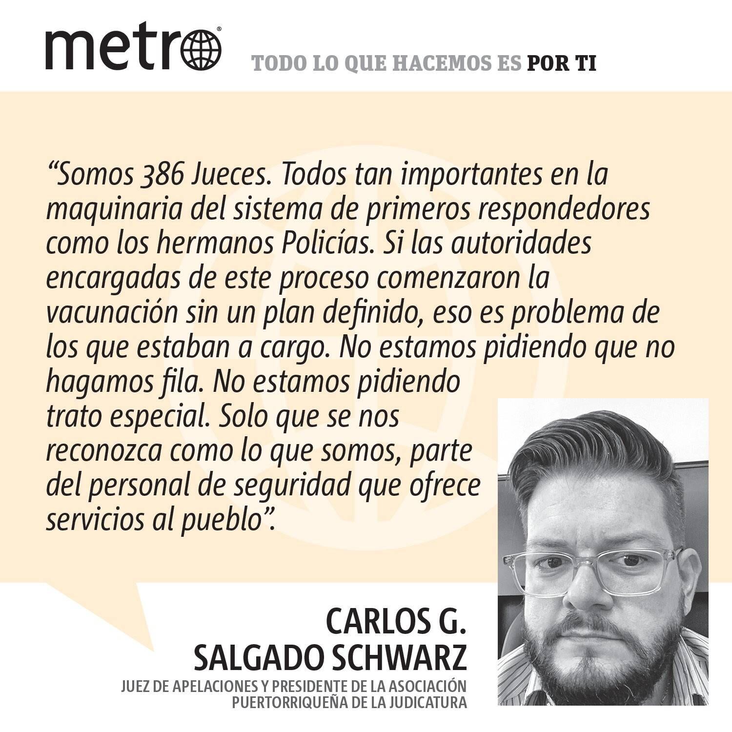 Somos 386 Jueces. Todos tan importantes en la maquinaria del sistema de primeros respondedores como los hermanos Policías. Si las autoridades encargadas de este proceso comenzaron la vacunación sin un plan definido, eso es problema de los que estaban a cargo.