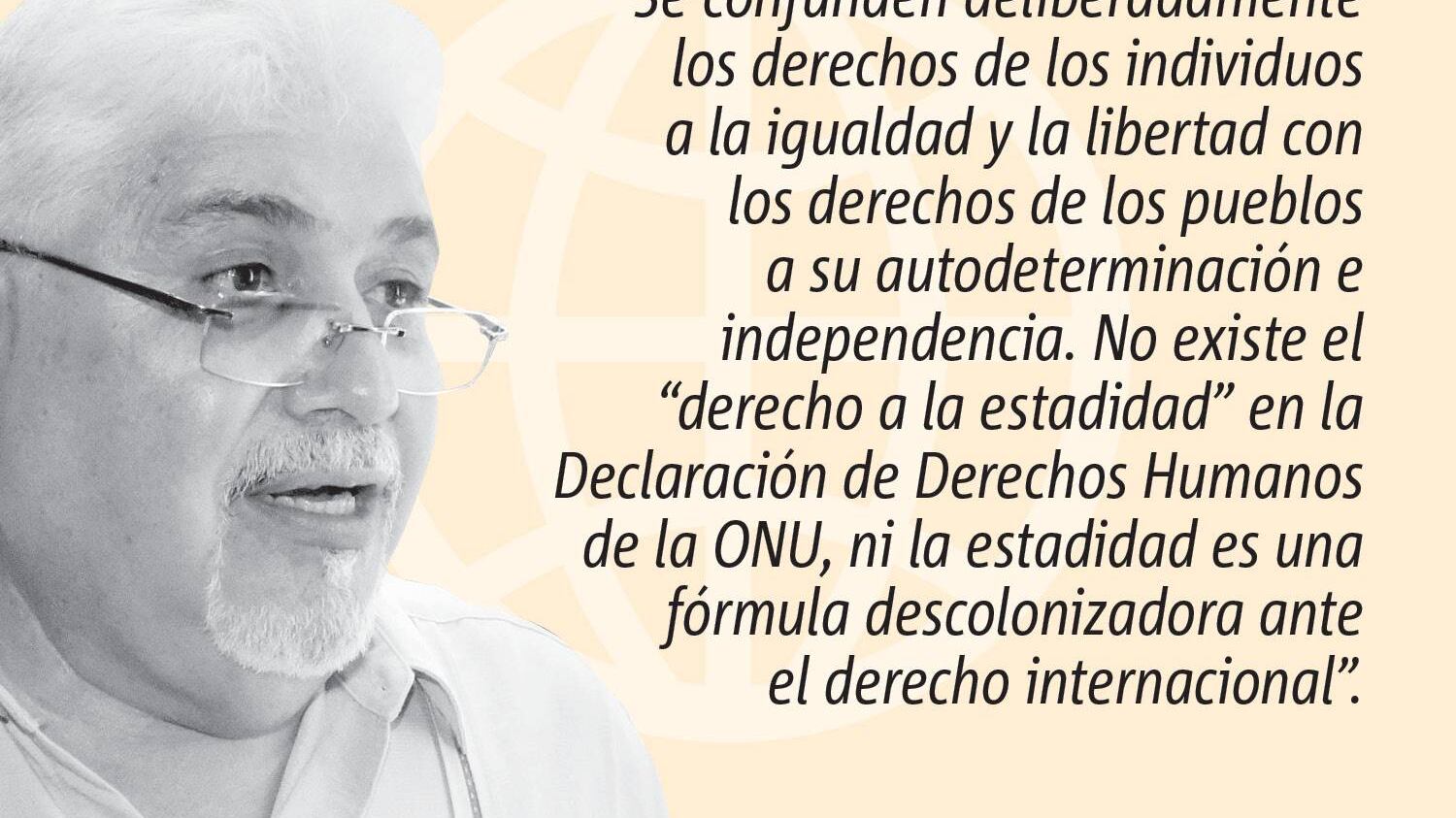 No obstante, la estrategia del Partido Nuevo Progresista se ha centrado en tres ejes: (1) convencer a los puertorriqueños que “la estadidad es para los pobres”—por la “lluvia” de ayudas federales que traería, (2) cabildear para que el Congreso de Estados Unidos anexe a Puerto Rico por “decreto”—ejerciendo la soberanía colonial de este cuerpo sobre la Isla, y (3) convencer a los norteamericanos y a los puertorriqueños, que el “derecho a la igualdad” de los individuos se materializa en la estadidad. Se olvida que el primer artículo de la declaración habla de individuos, seres humanos libres e iguales, no de países ni territorios. Se confunden deliberadamente los derechos de los individuos a la igualdad y la libertad con los derechos de los pueblos a su autodeterminación e independencia. No existe el “derecho a la estadidad” en la Declaración de Derechos Humanos de la ONU, ni la estadidad es una fórmula descolonizadora ante el derecho internacional. La Estadidad, como acto de soberanía del Congreso norteamericano sobre la Isla, resolvería el problema del estatus, pero no es una acción descolonizadora.