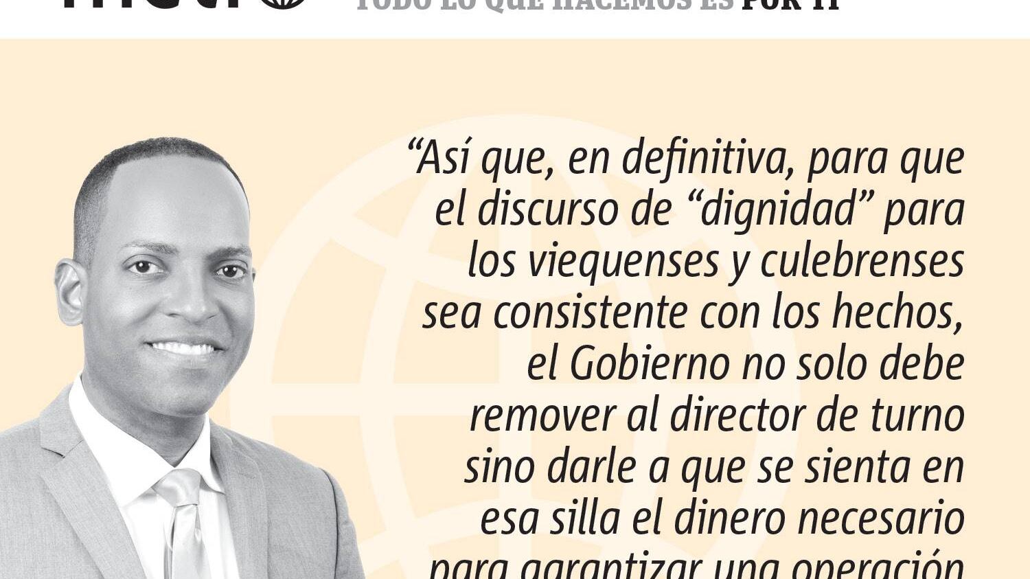Así que, en definitiva, para que el discurso de “dignidad” para los viequenses y culebrenses sea consistente con los hechos, el Gobierno no solo debe remover al director de turno sino darle a que se sienta en esa silla el dinero necesario para garantizar una operación de primera. Cualquier otra cosa será jugar solo para las gradas. Solo que en esta ocasión el público ya ha visto demasiados partidos y esta vez no quiere terminar en cero.