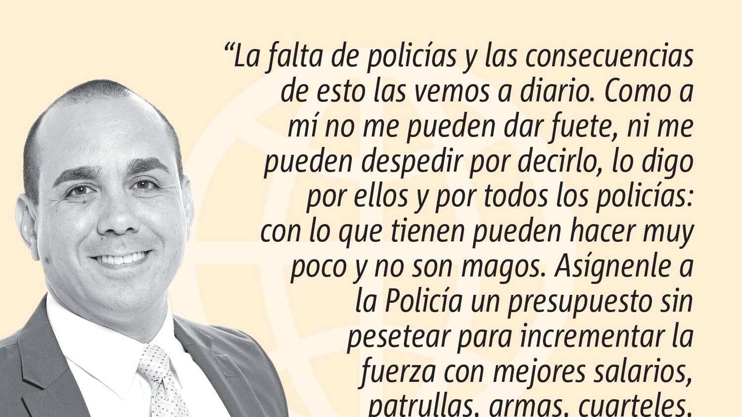Yo sé que ambos quieren resolver este y otros problemas. Sé que hay un compromiso de su parte con la seguridad y con el pueblo, pero hay algo que también sé que jamás van a admitir: con lo que tienen de recursos, de presupuesto, no pueden hacer mucho. Lo políticamente correcto es decir que siempre hace falta mayores recursos pero que con lo que tienen pueden manejarlo. Eso no es cierto, en mi opinión. La falta de policías y las consecuencias de esto las vemos a diario. Como a mí no me pueden dar fuete, ni me pueden despedir por decirlo, lo digo por ellos y por todos los policías: con lo que tienen pueden hacer muy poco y no son magos. Asígnele a la Policía un presupuesto sin pesetear para incrementar la fuerza con mejores salarios, patrullas, armas, cuarteles, adiestramientos y tecnología, entre otras cosas.