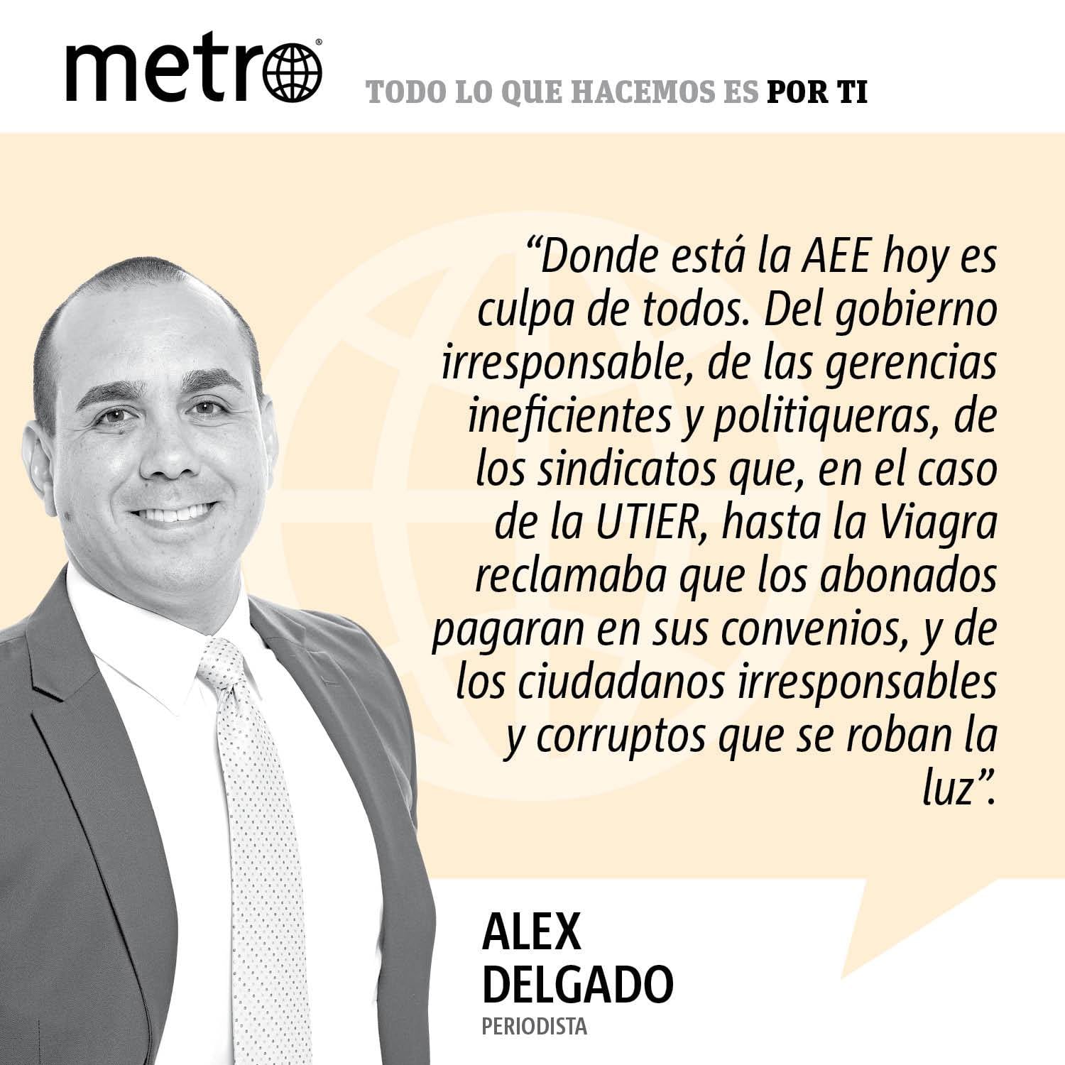 Donde está la AEE hoy es culpa de todos. Del gobierno irresponsable, de las gerencias ineficientes y politiqueras, de los sindicatos que, en el caso de la UTIER, hasta la Viagra reclamaba que los abonados les pagara en sus convenios, y de los ciudadanos irresponsables y corruptos que se roban la luz. Todos han puesto su grano para que la AEE llegue a donde está hoy.