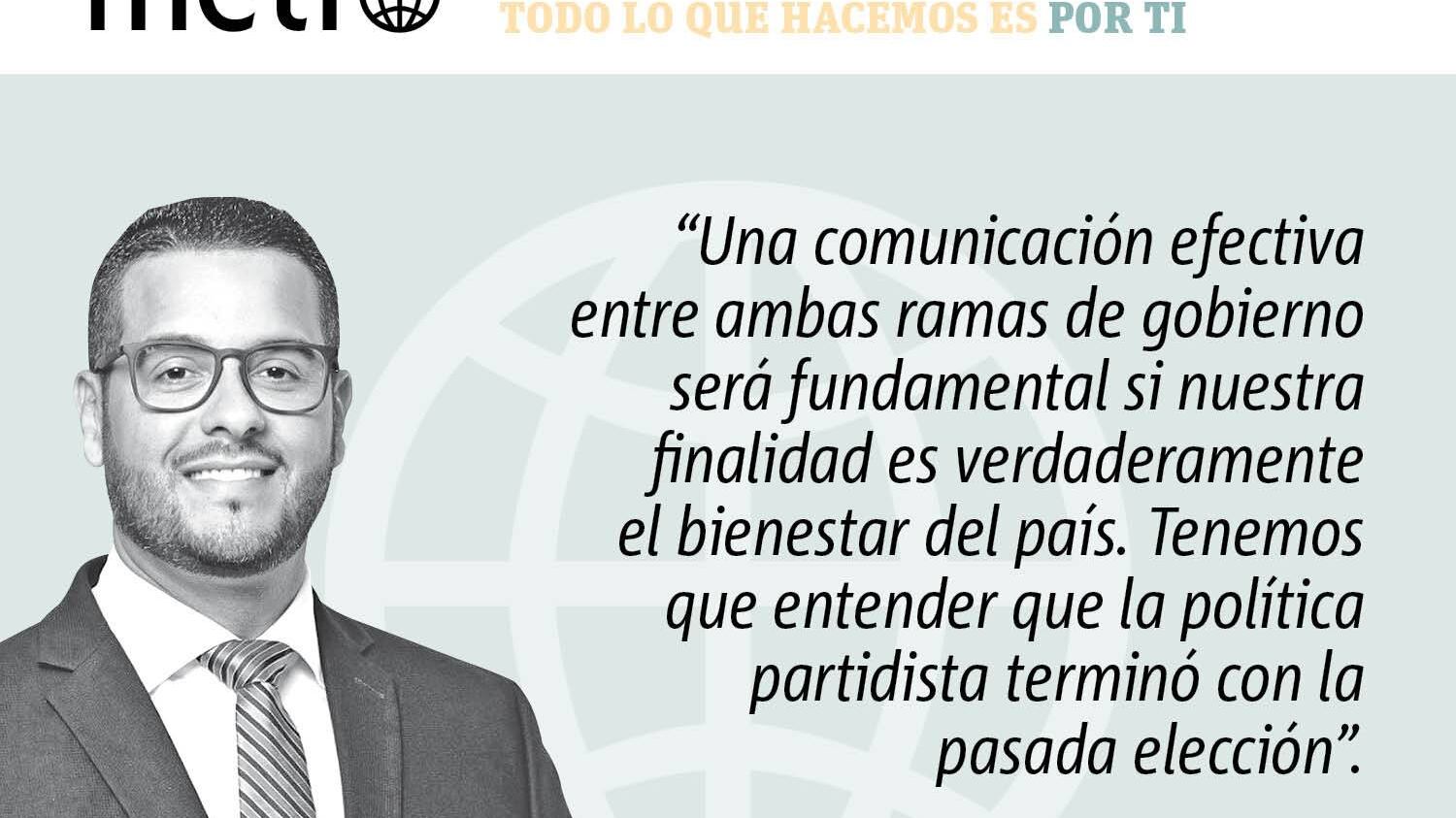 Hablemos claro. El diálogo justo y serio debe estar siempre sobre la mesa entre la rama legislativa y la ejecutiva, más aún en un gobierno compartido. Una comunicación efectiva entre ambas ramas de gobierno será fundamental si nuestra finalidad es verdaderamente el bienestar del país. Tenemos que entender que la política partidista terminó con la pasada elección y que, desde este día en adelante el país nos evaluará por nuestros actos, o por nuestras batallas, en adelantar sus causas.