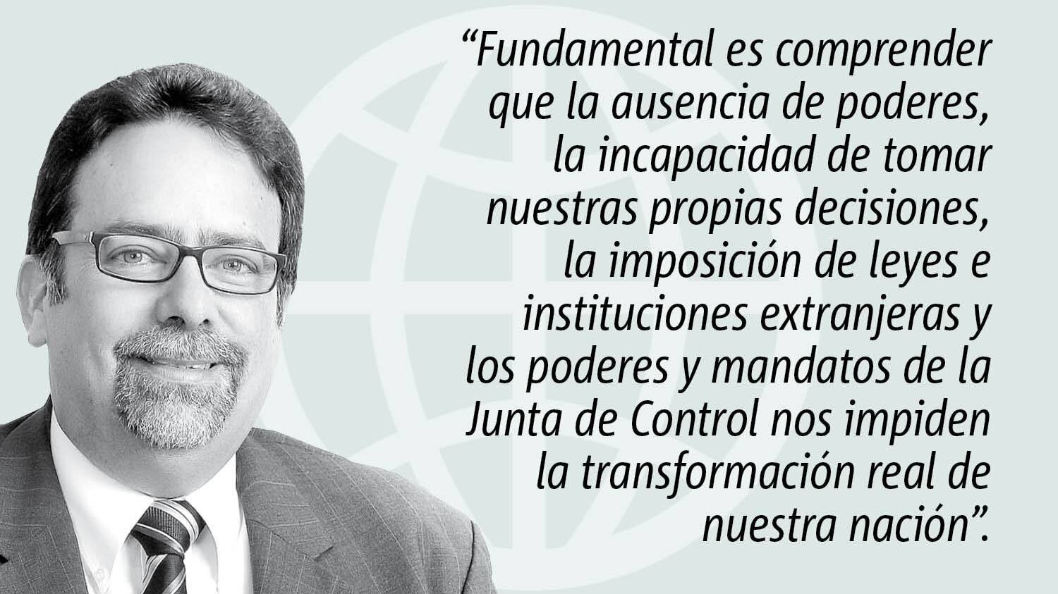 Es necesario apoyar a las organizaciones que cumplen un papel importante en nuestra sociedad, fiscalizar, denunciar y legislar sobre la acción gubernamental para transformarla dentro de nuestra realidad colonial. Pero lo verdaderamente fundamental es comprender que la ausencia de poderes, la incapacidad de tomar nuestras propias decisiones como pueblo, la imposición de leyes e instituciones extranjeras y los poderes y mandatos de la Junta de Control nos impiden la transformación real de nuestra nación.