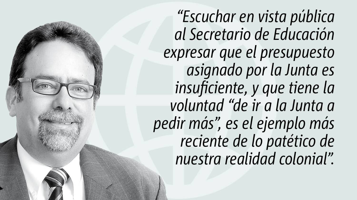 Escuchar en vista pública al Secretario de Educación expresar que el presupuesto asignado por la Junta es insuficiente, y que tiene la voluntad “de ir a la Junta a pedir más”, es el ejemplo más reciente de lo patético de nuestra realidad colonial.