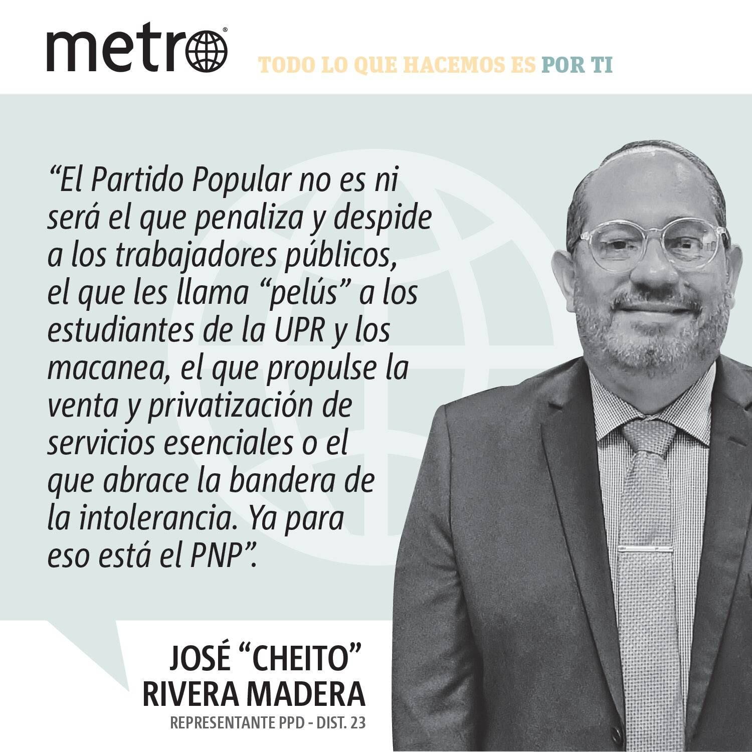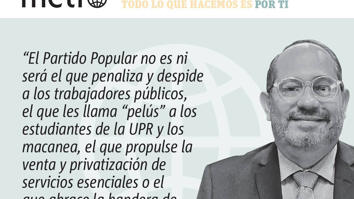 El procesó comenzó. El Partido Popular no es ni será el que penaliza y despide a los trabajadores públicos, el que llama “pelús” a los estudiantes de la UPR y los macanea, el que propulsa la venta y privatización de servicios esenciales o el que abraza la bandera de la intolerancia. Ya para eso está el PNP. Debemos movernos de acuerdo a los tiempos y escuchar el grito de la calle. Hay un nuevo jíbaro generacional, machete en mano, listo para comenzar la zafra, y hay que brindarle un país de trabajo, respeto y dignidad. El que no lo entienda, se quedará postergado ante esta realidad histórica. Los invito a que vayamos juntos por un nuevo Puerto Rico.