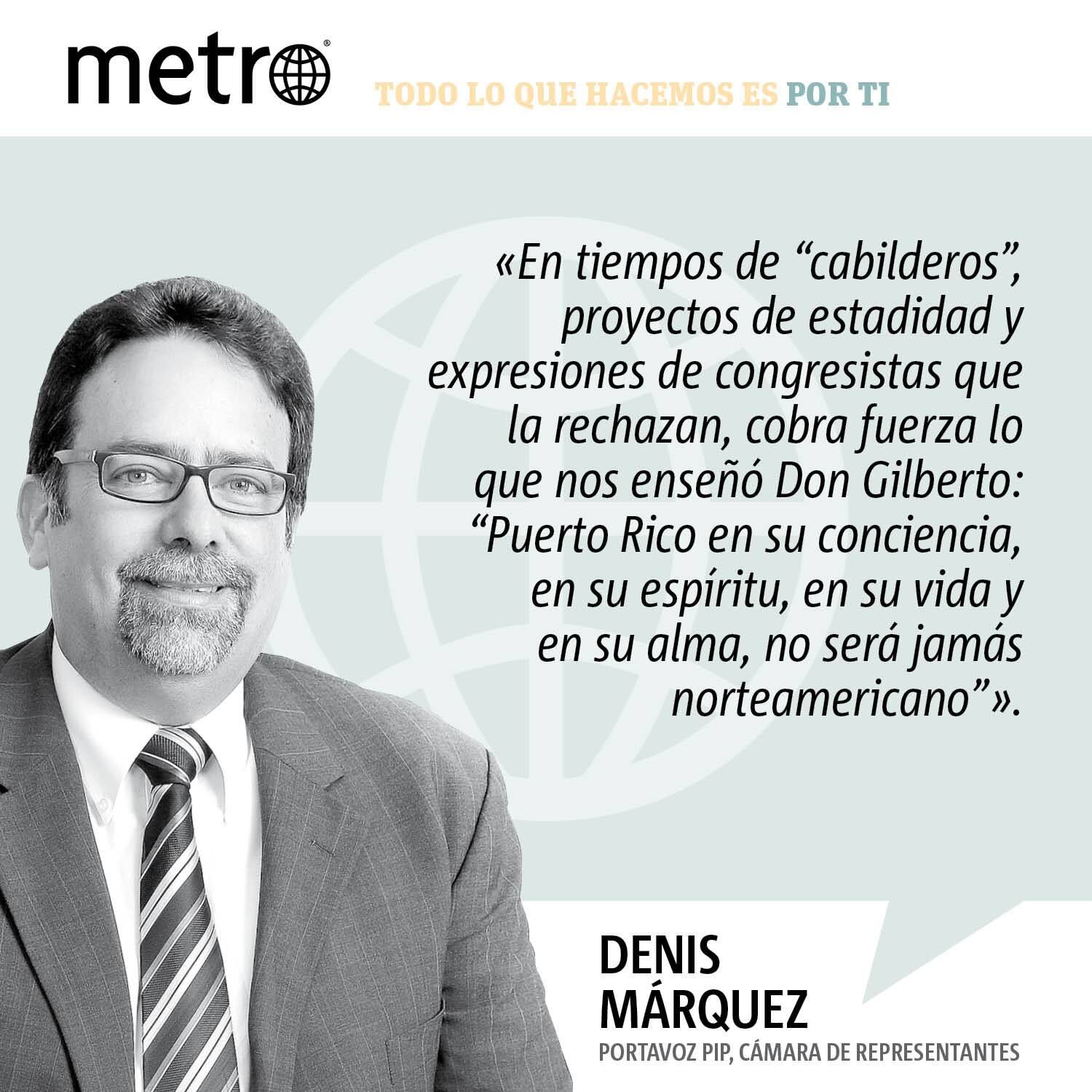 En tiempos de “cabilderos”, proyectos de estadidad y expresiones de congresistas que la rechazan, cobra fuerza lo que nos enseñó Don Gilberto: “Puerto Rico en su conciencia, en su espíritu, en su vida y en su alma, no será jamás norteamericano. Nosotros seremos siempre puertorriqueños y estaremos siempre vinculados, en lo entrañable de la cultura, de la personalidad y de la historia, a la familia de pueblos latinoamericanos. Entendemos que así cumplimos mejor el destino que nos ha deparado la historia”.