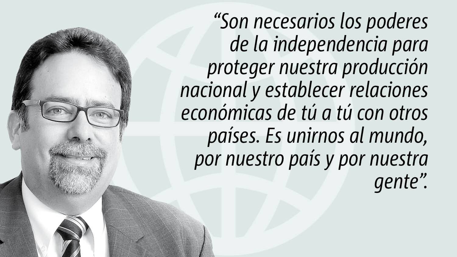 Es urgente comenzar un nuevo modelo económico basado en el desarrollo de una industria, comercio y agricultura nacional impulsando legislación y acciones de gobierno que promuevan este modelo. Pero sobre todo, son necesarios los poderes de la independencia para proteger nuestra producción nacional y establecer relaciones económicas de tú a tú con otros países. Es unirnos al mundo, por nuestro país y por nuestra gente.