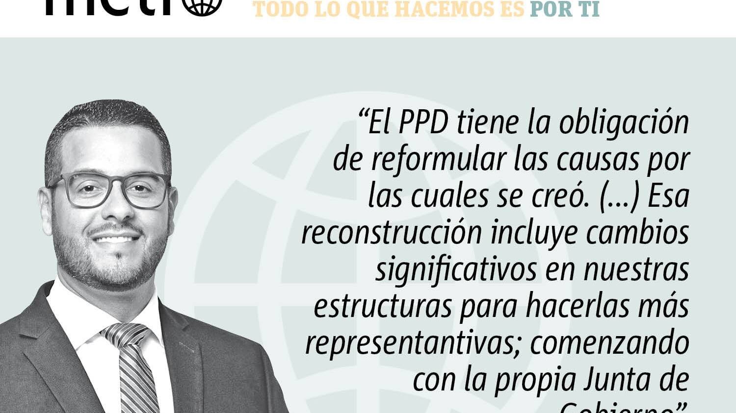 Hoy, el PPD tiene la obligación de reformular las causas por las cuales se creó. Para eso, nos toca encaminar el proceso de diálogo y trabajo más intenso que hayamos realizado en tiempos recientes. Además del proceso tradicional de reorganización, tenemos que rediseñar la institución. Esa reconstrucción incluye cambios significativos en nuestras estructuras para hacerlas más representantivas; comenzando con la propia Junta de Gobierno.