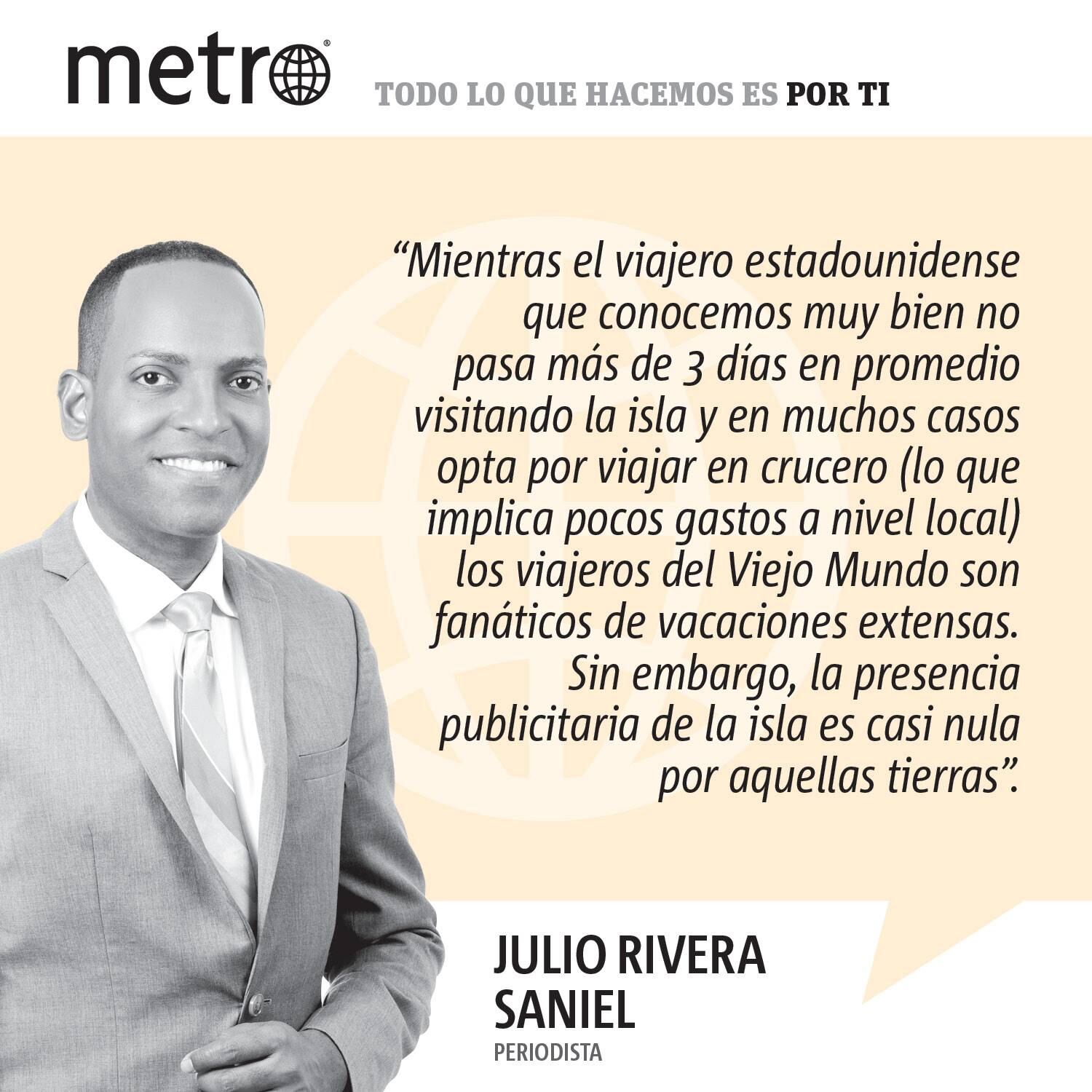 No es un problema nuevo. Puerto Rico históricamente se ha conformado con atraer a viajeros estadounidenses de la Costa Este y ha mostrado poco interés en atraer nuevos visitantes. Como resultado, el presupuesto de publicidad para la isla es casi inexistente y se pierde en el universo de millones que gastan destinos similares para atraer a viajeros europeos con sus euros y sus ganas de vacaciones largas. Mientras el viajero estadounidense que conocemos muy bien no pasa más de 3 días en promedio visitando la isla y en muchos casos opta por viajar en crucero (lo que implica pocos gastos a nivel local) los viajeros del Viejo Mundo son fanáticos de vacaciones extensas. Sin embargo, la presencia publicitaria de la isla es casi nula por aquellas tierras. El resultado es que pocos nos conocen. Puerto Rico es comúnmente confundido con otros destinos (como Costa Rica) y, en el peor de los escenarios solo se le recuerda como una antigua posesión de ultramar sin mayores referentes.
