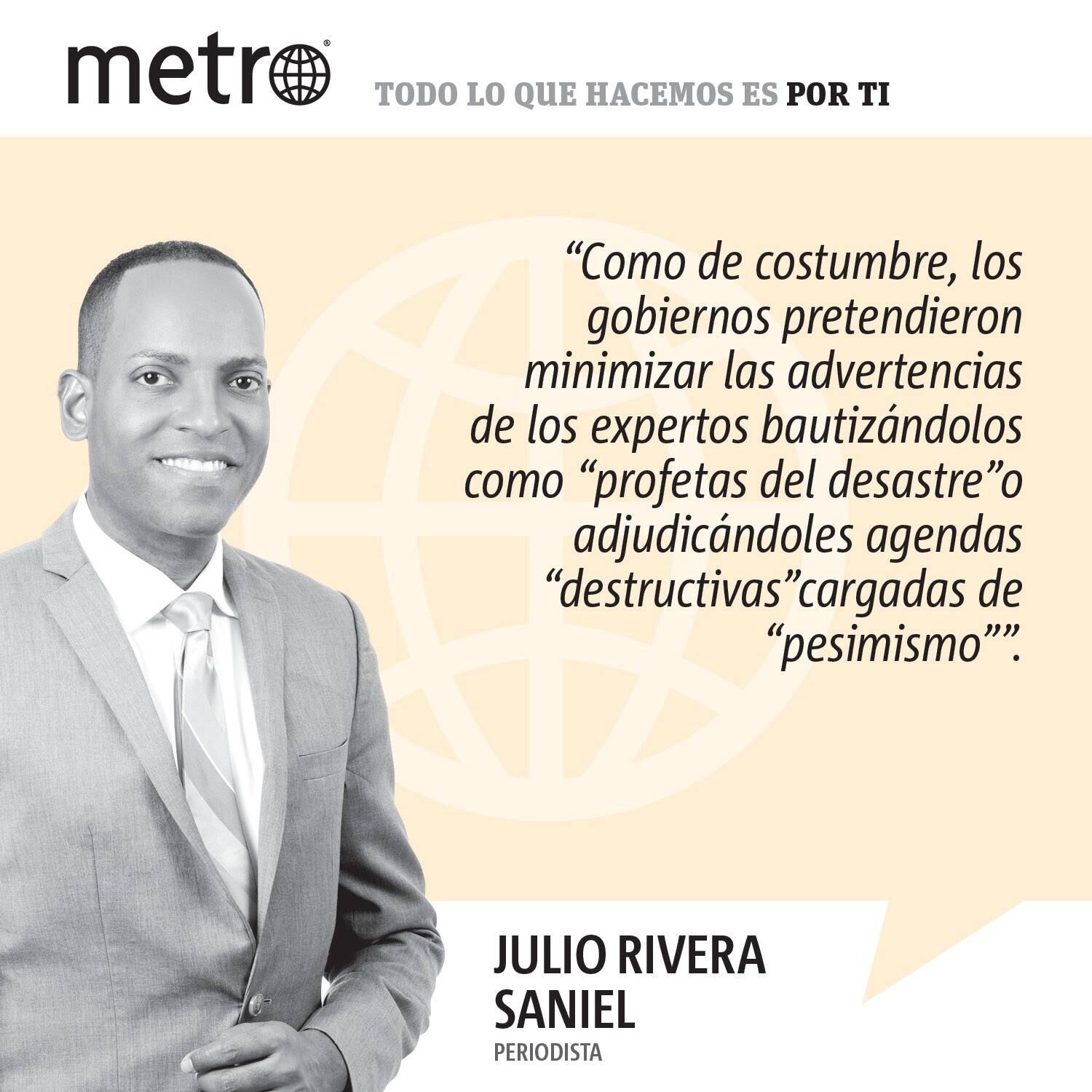 La historia parece repetirse con el cambio climático. Se nos advirtió hace décadas. Los gobiernos -y los ciudadanos- o lo ignoraron, o lo descartaron como un augurio apocalíptico sacado de un guión de ciencia ficción o simplemente lo calificaron de falso o impreciso. Todavía recuerdo cuando en 2018 el entonces presidente de Estados Unidos, Donald Trump, se lanzó un “no me lo creo” poco después de la publicación de aquel abultado informe sobre el tema en el que participaron 300 científicos de 13 agencias federales. Su total desconocimiento científico sobre un tema científico se convirtió en la política pública “de facto”. A nivel local no estamos muy lejos. No se dice pero tampoco se hace nada al respecto. Y el tiempo corre.La erosión costera es un hecho. También el imparable aumento en el nivel del mar. Acá en la isla es evidente el destino que aguarda a comunidades en la costa Norte como Ocean Park en Condado o algo más al Este, en Loíza, donde el agua se ha metido a calles y destrozado estructuras costeras. Ante este escenario desde hace años se han lanzado propuestas y se han hecho advertencias. En el segundo renglón, ya se nos ha advertido que el Aeropuerto Internacional Luis Muñoz Marín -nuestra puerta de entrada y salida al mundo- quedará bajo agua en algunas décadas. Y si ese es el caso, no es descabellado pensar que lo mismo ocurrirá con las comunidades cercanas. De hecho, el propio Director de la Autoridad de Puertos ha advertido que es necesario iniciar un plan de “mudanza” para establecer las operaciones del aeropuerto en Aguadilla. Pero no se ha movido un dedo. De igual manera, se ha ignorado legislación que pretende condicionar o frenar la construcción en la zona costera bajo la premisa de que deben ser renovados términos como “zona marítimo terrestre”. Tome usted el caso del Proyecto del Senado 43 que ordenaría una moratoria en la construcción en las costas. El proyecto ha sido endosado por científicos, organizaciones ambientalistas y hasta un importante grupo de alcaldes de la Zona Norte. Pero la Oficina de Gerencia de Permisos se opuso y en la Legislatura la pieza ha quedado en el limbo. De hecho, los proyectos y resoluciones que sí han sido aprobados sobre el tema en casi 20 años parecen haberse convertido en letra muerta. Ya lo investigaba en 2018 el Centro de Periodismo Investigativo que daba cuenta de al menos 62 medidas aprobadas para atender el tema. Pero ninguna parecía haber redundado en el establecimiento de una política pública robusta. No sé. Seguro muchos piensan que es un chiste. Quizá, por aquello de ser consistentes, nos toca morir en otra guerra avisada.
